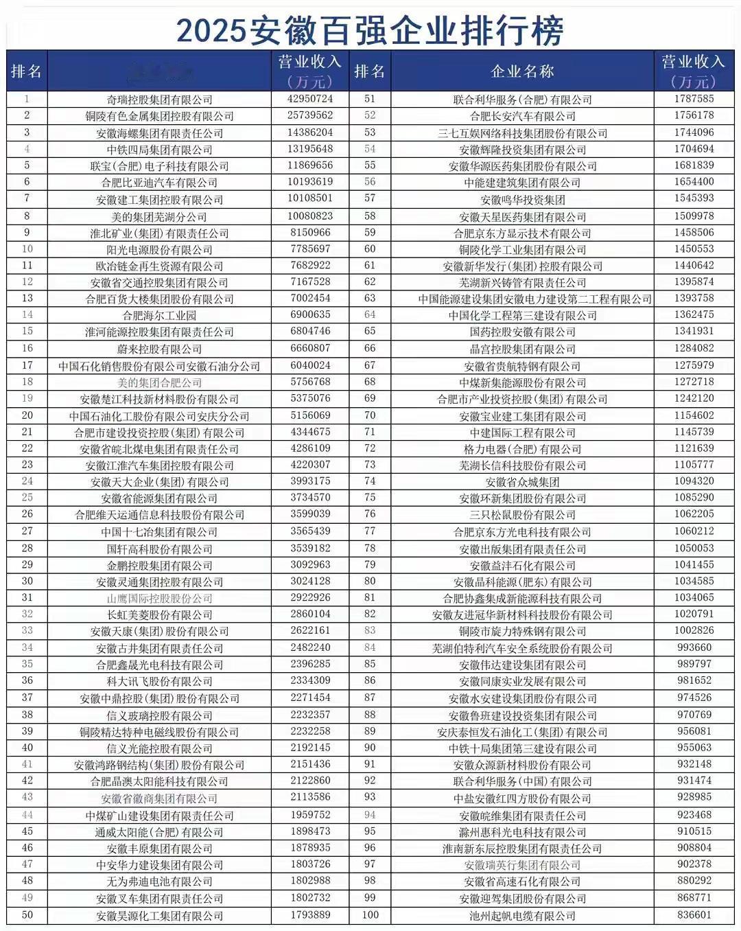 安徽,这次真的“硬核”出圈了! 最新发布的2025安徽百强企业榜单,乍一看是份