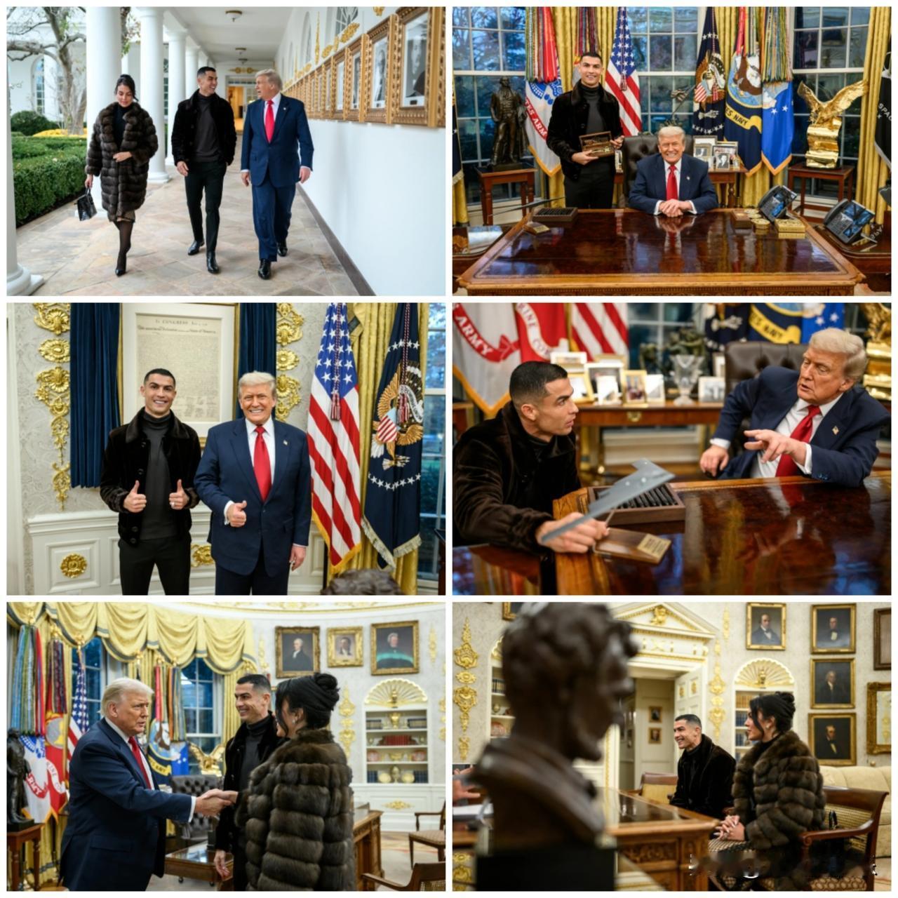 白宫公布C罗访白宫照片,与特朗普相谈甚欢 据外媒报道白宫网站11月19日发布了足球巨星C罗和未婚妻乔治娜·罗德里格斯(Georgina Rodríguez)访问白宫的照片,C罗和特朗普相谈甚欢。 11月18日晚,C罗还现身白宫晚宴。特朗普当时在台上发表演讲说:“你知道,我儿子是罗纳尔多的铁杆粉丝,无论罗纳尔多在哪里,他都会去看他。”