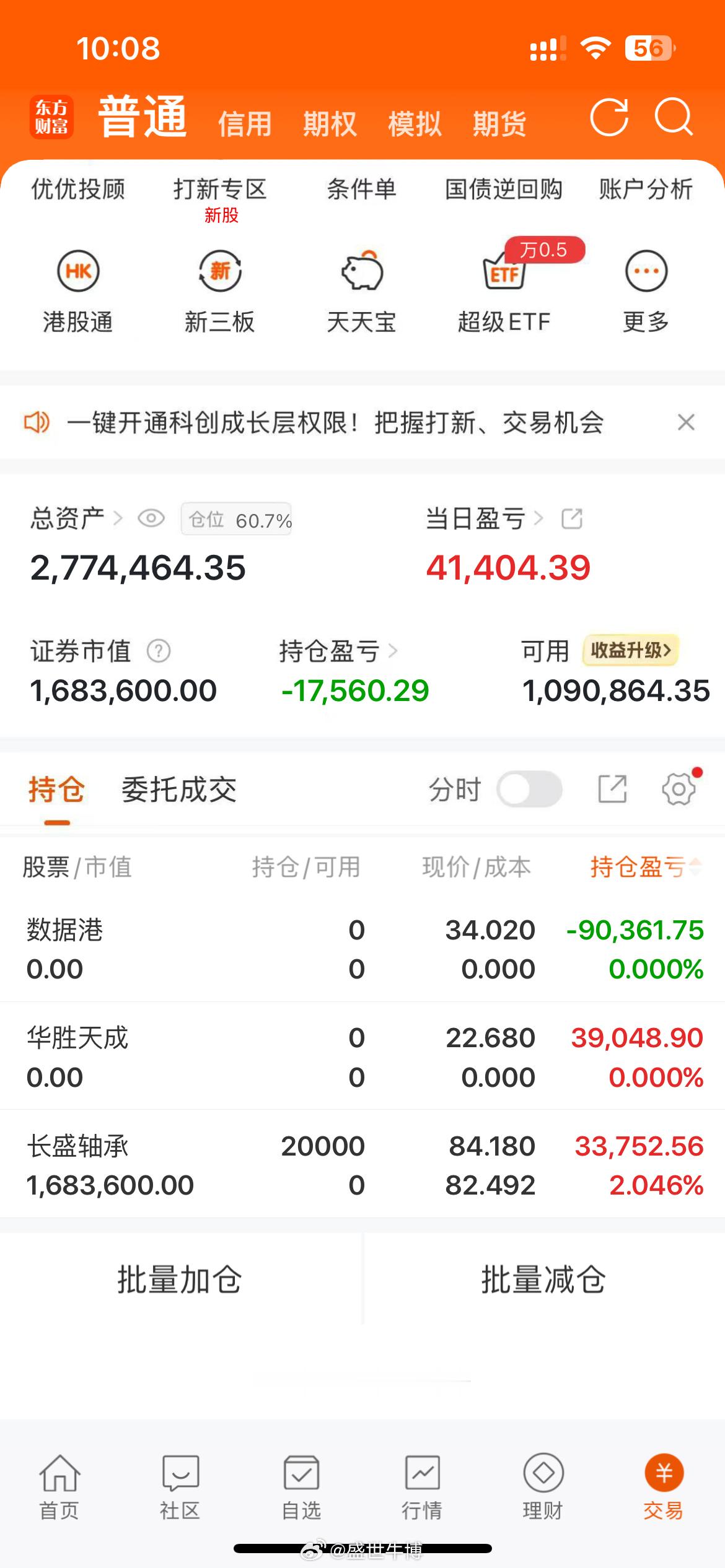 数据港走势不及预期,果断割肉止损锁定亏损,不恋战不拖泥带水!转头盯紧长盛轴承资金异动,趋势拐点清晰,当即切入抢占先机! 华胜天成我昨天在微博已经提示了的哈,刚刚高位获利了把握不好可以私信我大家记得不要忘记点赞评论666! 个人记录,仅供参考。