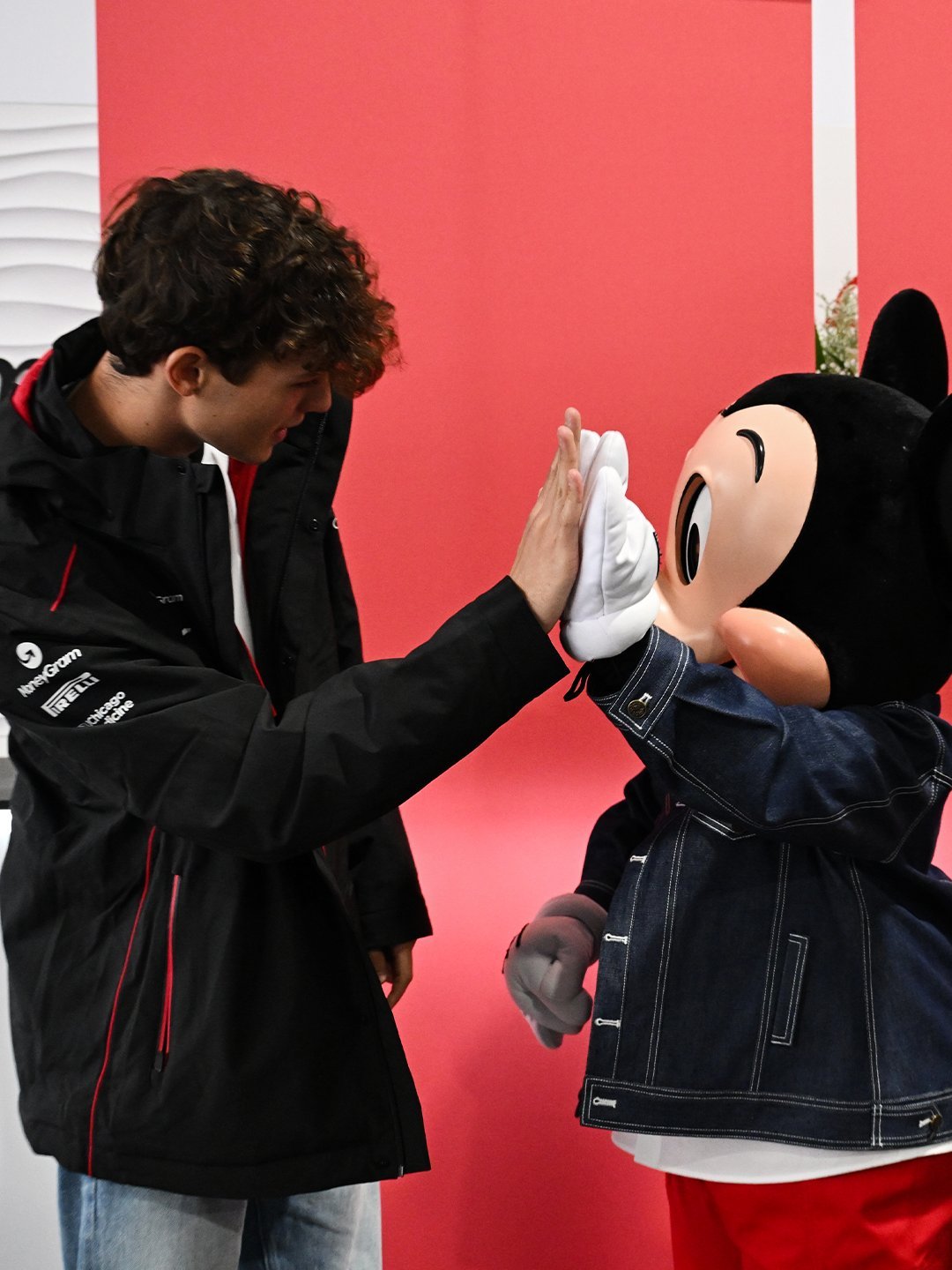 米奇来到了F1拉斯维加斯🇺🇸大奖赛的现场 并去到了哈斯车队的休息室跟奥康和贝尔曼打招呼