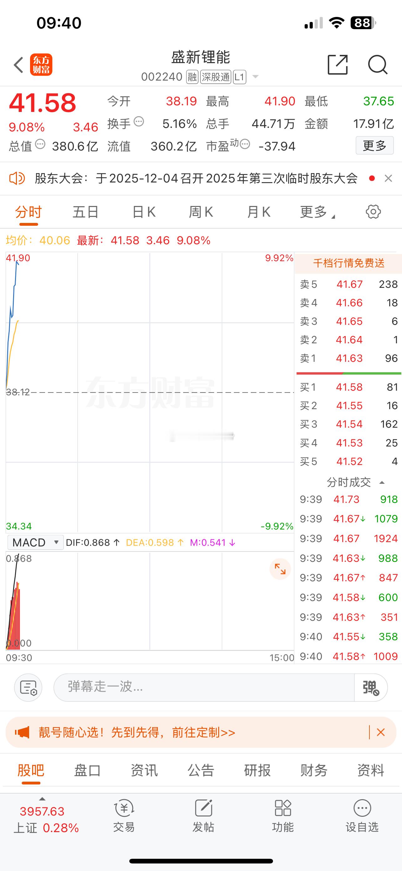 看来今天的锂电池很不错,昨天的早盘股大中矿业涨停,盛新锂能也接近涨停,恭喜介入的
