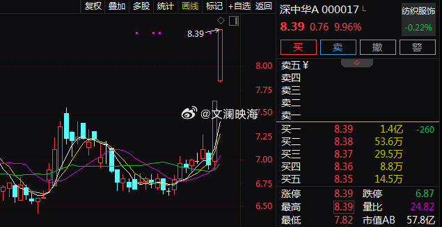 今日首个涨停标的来了!$深中华Asz000017$成功上板,目光聚焦!