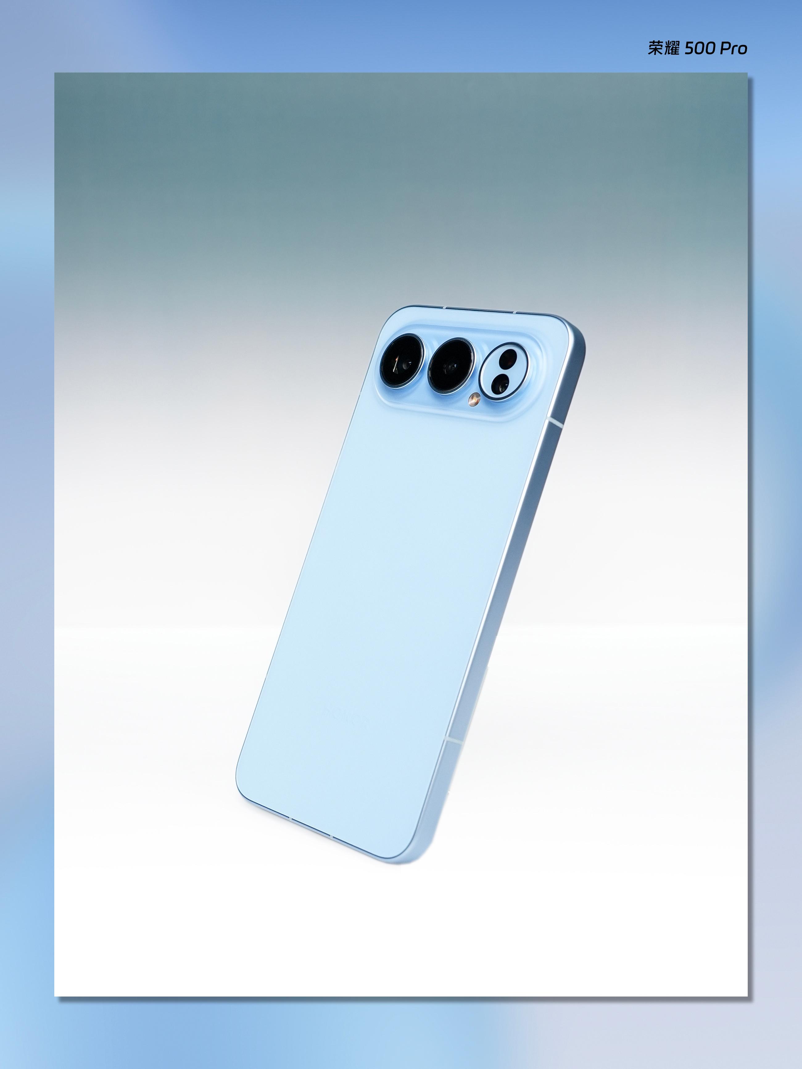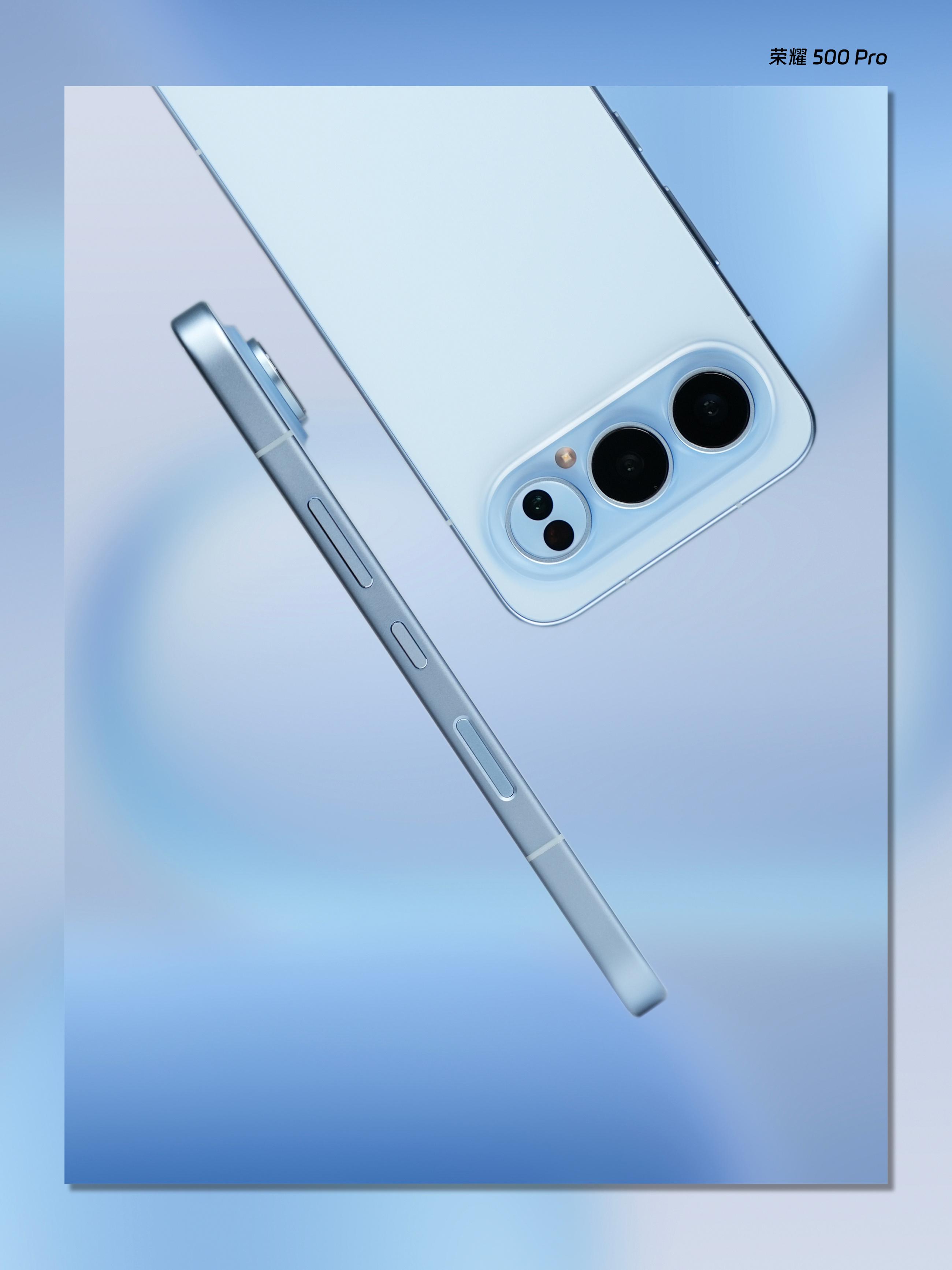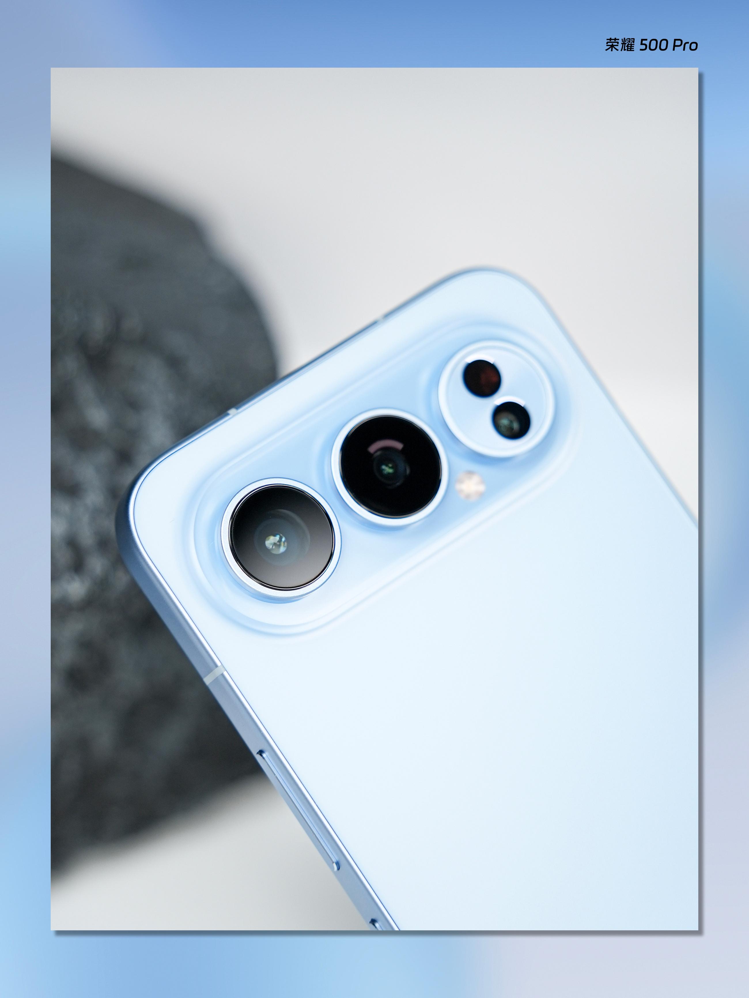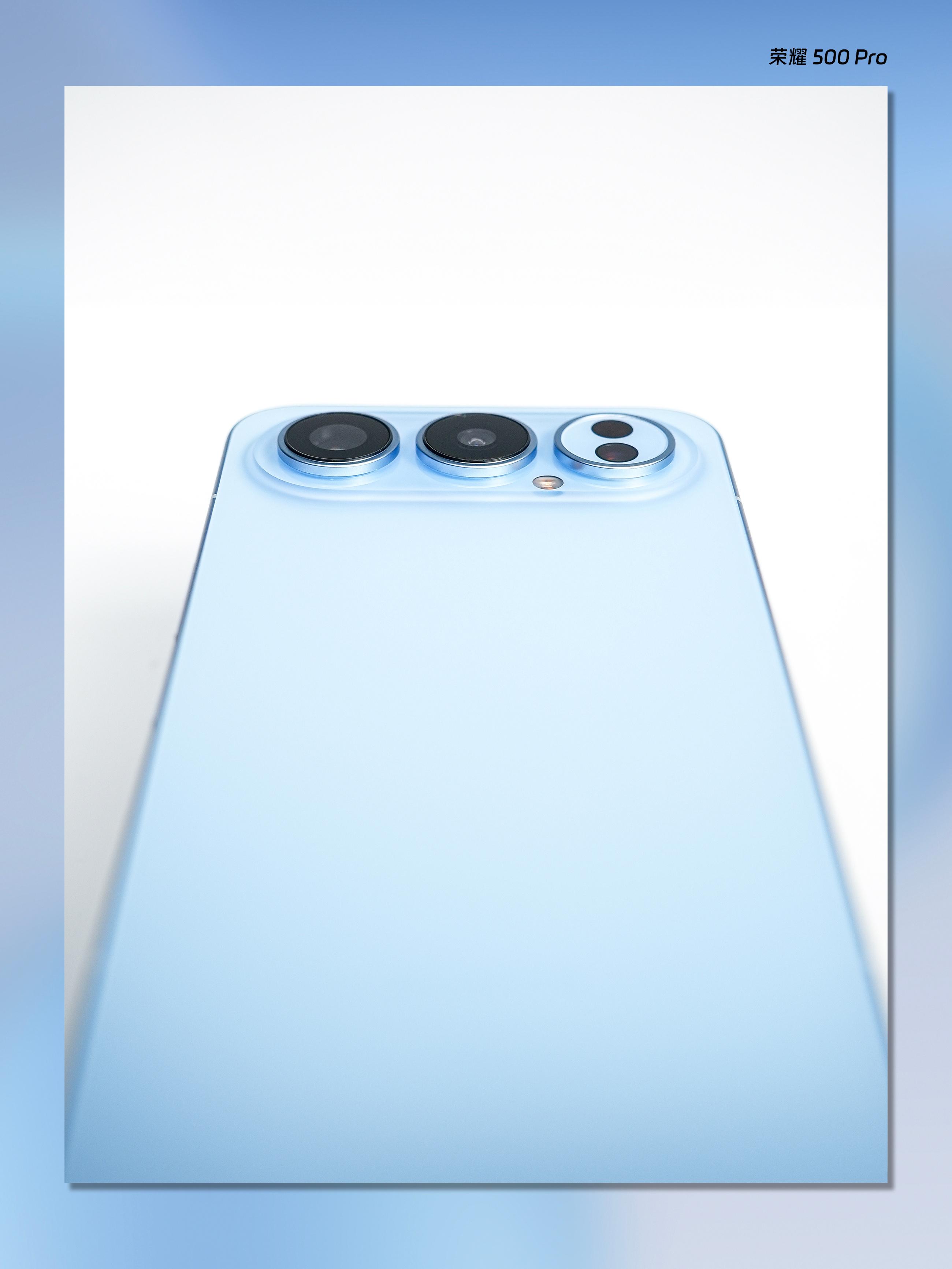 |荣耀500Pro这款是“海蓝宝”版本。通透蓝调的背板,在光线下有水晶一般的效
