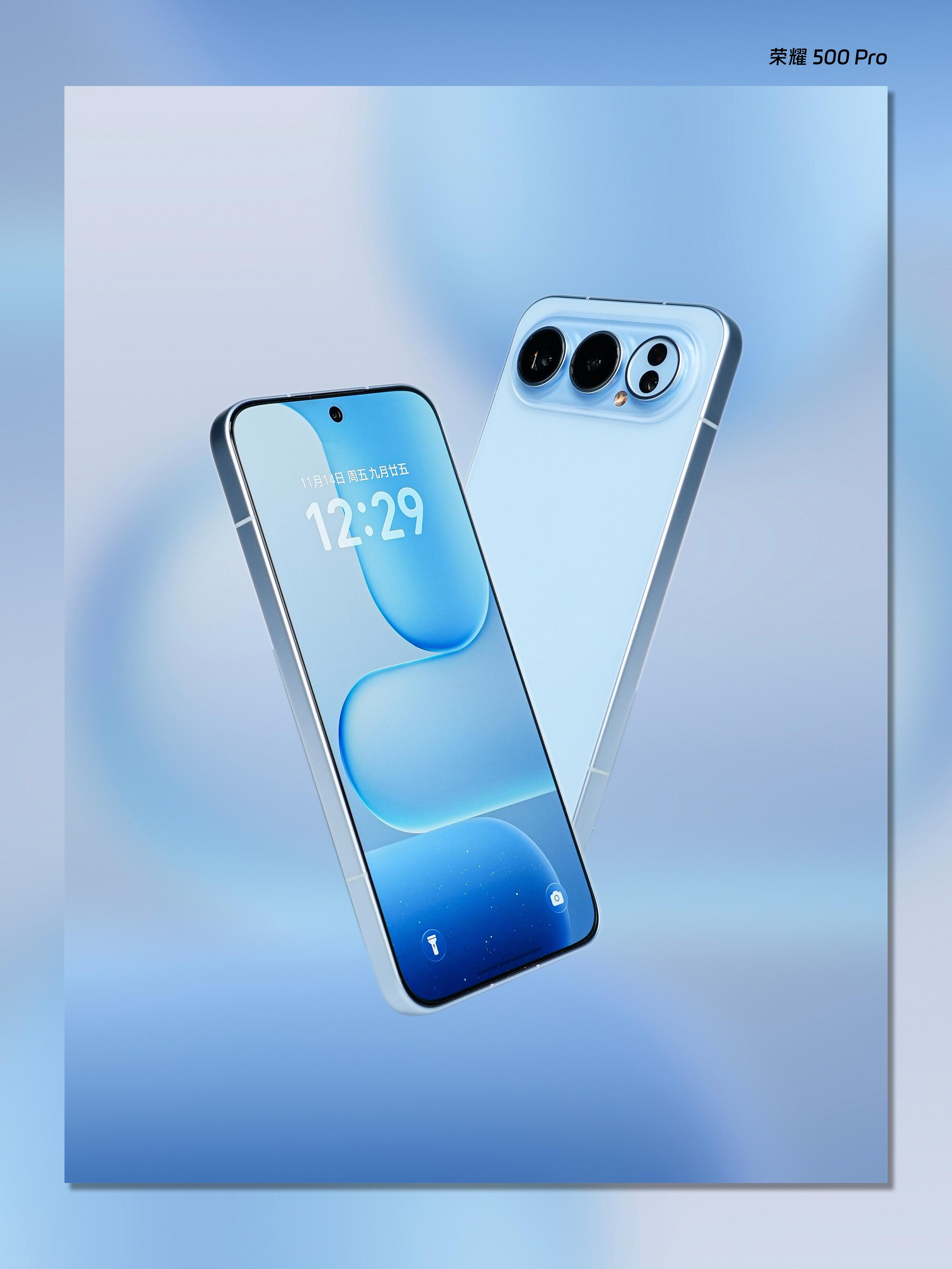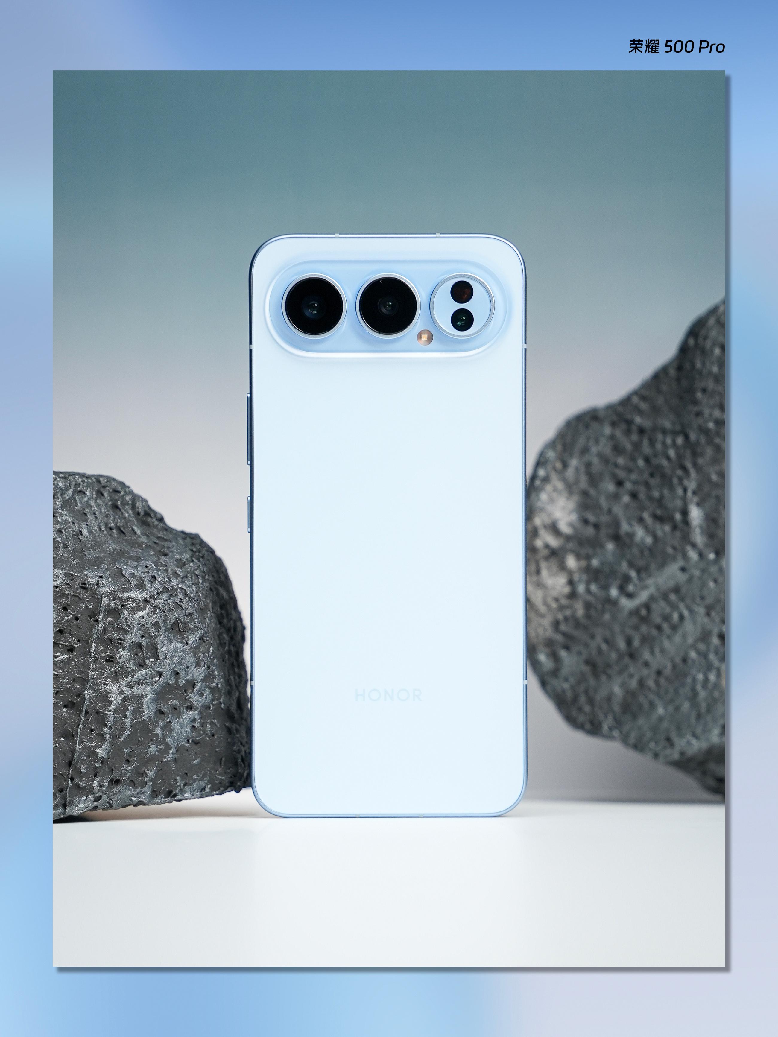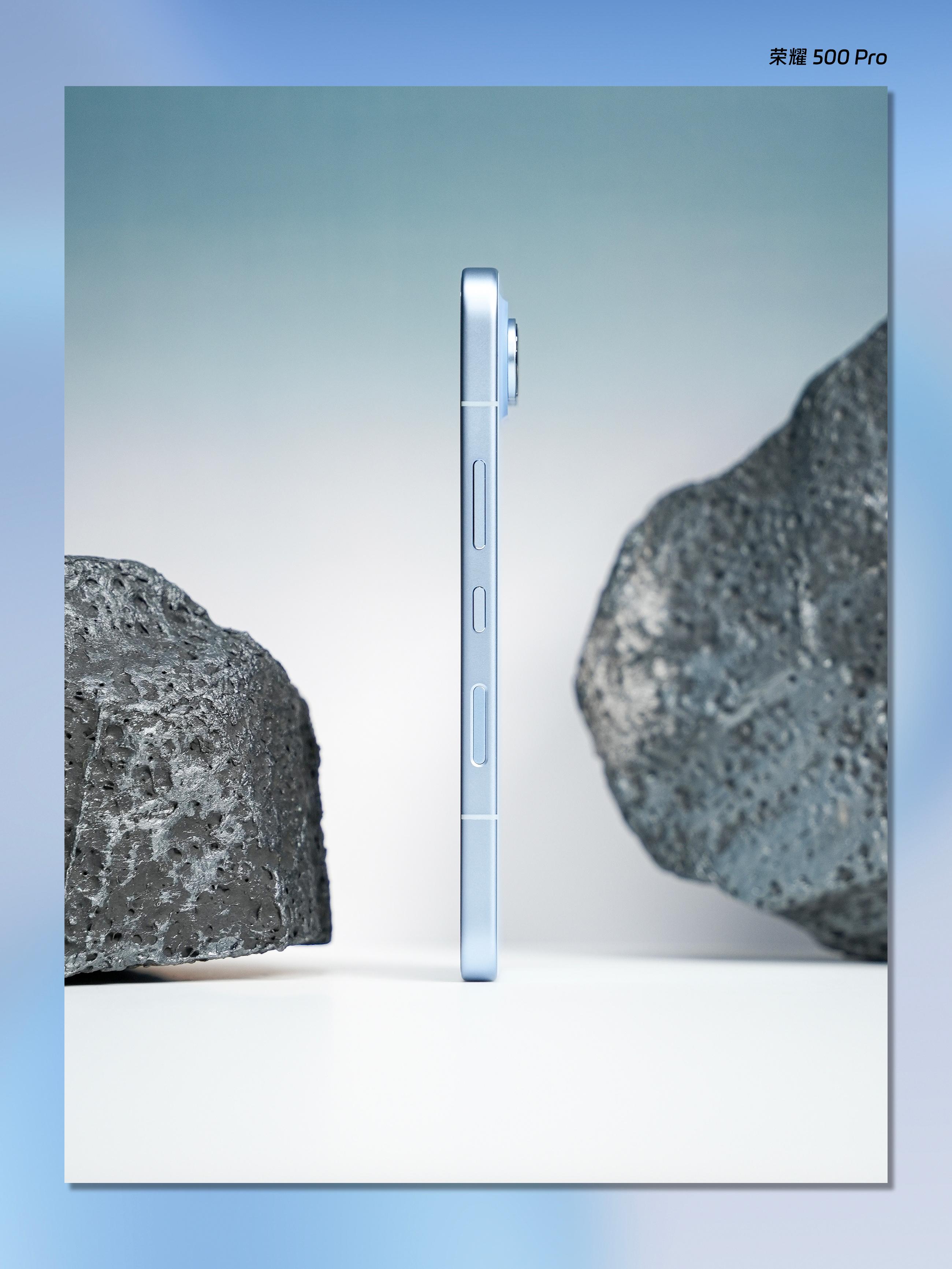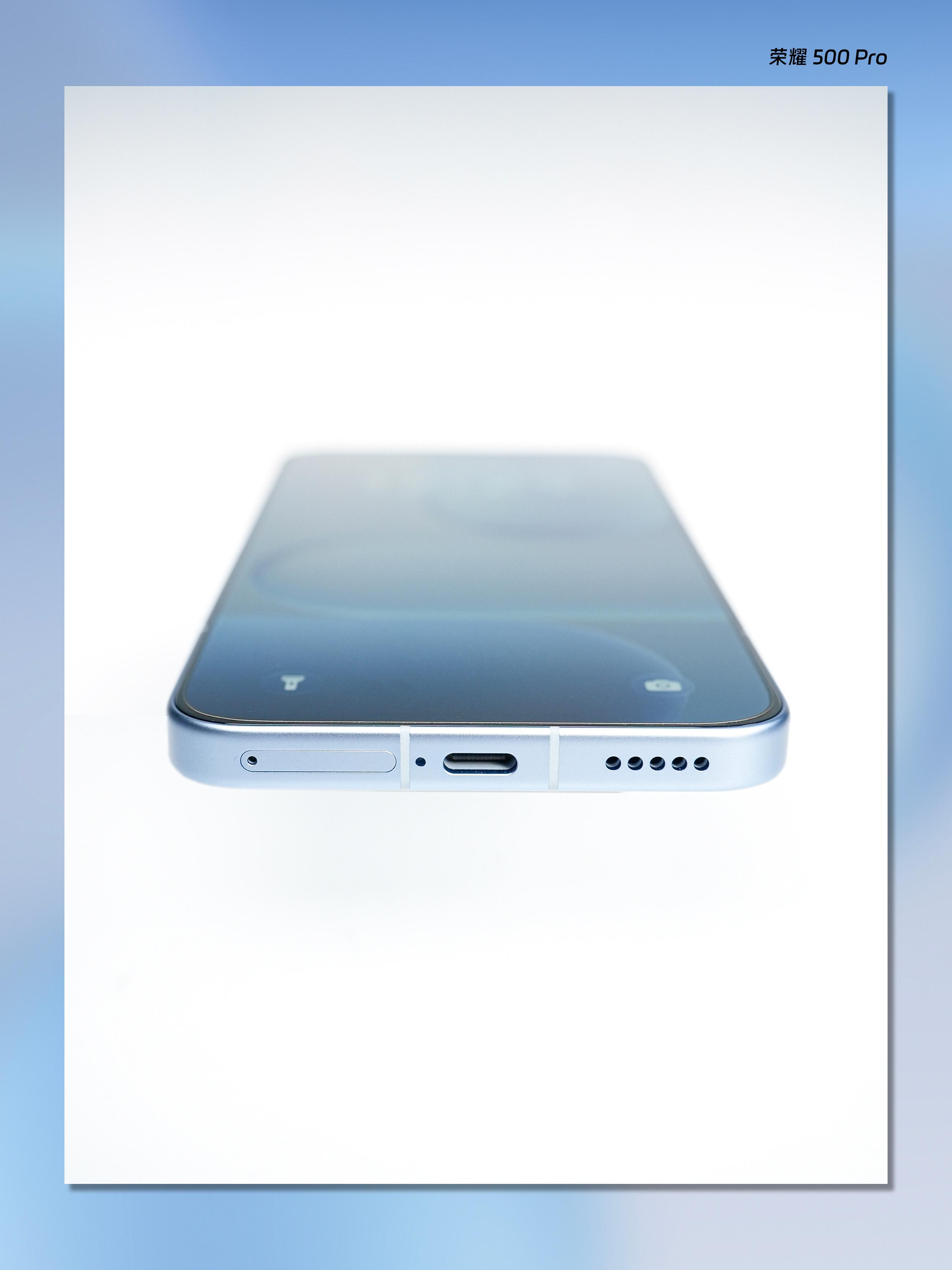 |荣耀500Pro这款是“海蓝宝”版本。通透蓝调的背板,在光线下有水晶一般的效