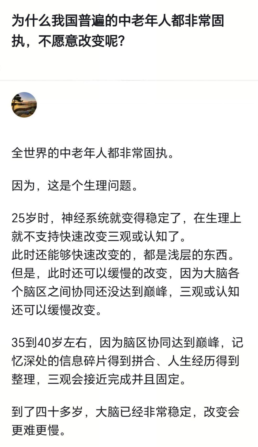 为什么我国普遍的中老年人都非常固执,不愿意改变呢?