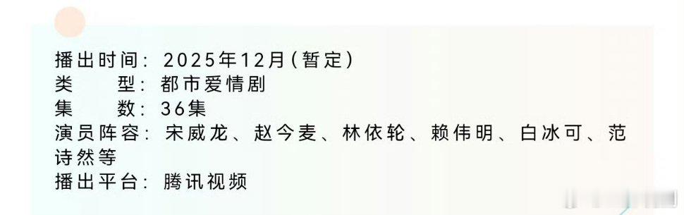 【二胖发布】 西嘻影业出品,陈宙飞导演,根据顾漫同名小说并由原作者亲自担任编剧,宋威龙、赵今麦主演的《 》正式开启招商,12月腾讯视频全网独播!