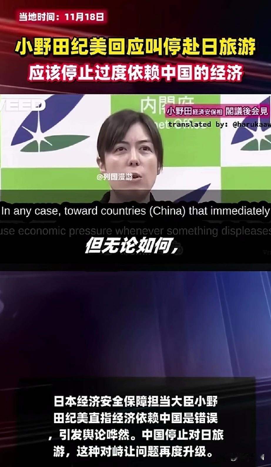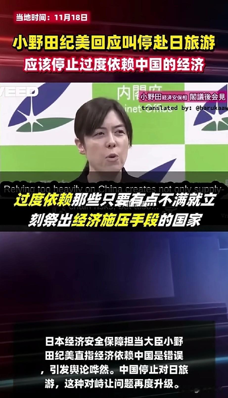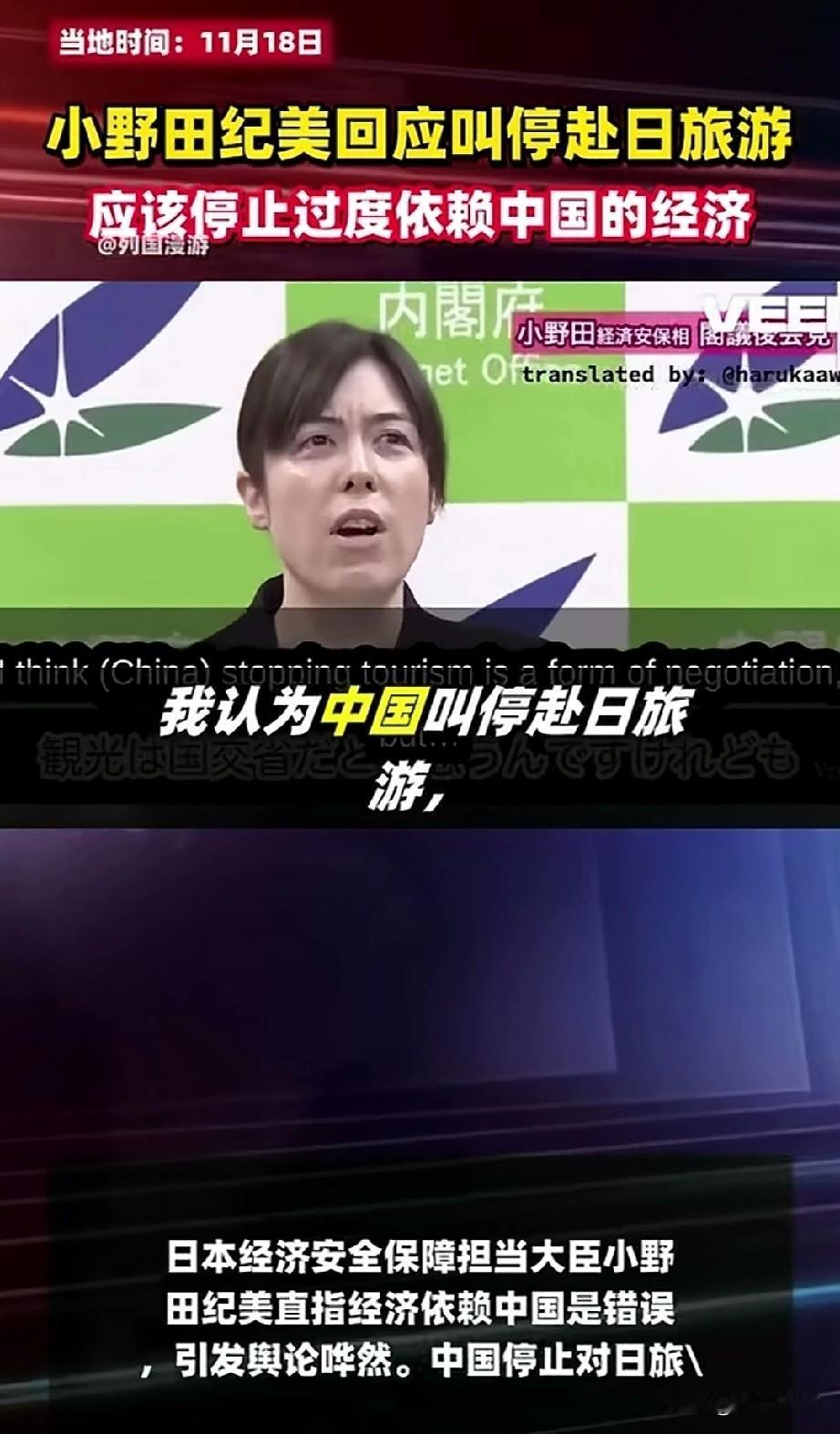 近日岛国官员回应了国人暂停给岛国旅游业造成不可估量的损失, 她非但不反省, 反而大言不惭表示, 应该停止过度依赖中国经济, 虽然这次旅游业受到了很大的损失, 但是也可以趁机和中国切割, 这样就不会被中国所制裁, 这就是错误言论, 因为他们让民众平白无故受损失, 估计现在日本旅游业从业人员要把这位日本女官员骂惨了, 国人退了50万张奔赴日本旅游的飞机票,就是担心日本不安全, 毕竟如今日本国内动荡不安! 大家对于日本女官员的言论怎么看? 日本国旅游 日本旅游成本 日本旅游消费 旅游经济 日旅游新规 旅游发展困境