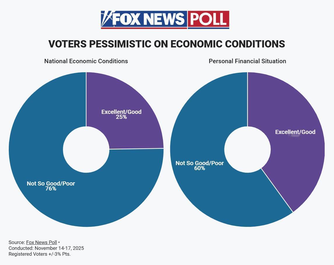 美国最新民调显示:民众对经济现状普遍不满,两党支持率均受挫 近日,福克斯新闻最新发布的全美民调结果显示,美国民众对当前经济状况普遍感到不满,生活成本持续上涨引发广泛担忧。此次调查发现,多数选民认为白宫经济政策成效不彰,且近期发生的联邦政府停摆事件进一步削弱了民众对政治人物的信任。 调查数据显示,高达76%的受访者对国家经济状况给予负面评价,这一比例较今年7月的67%和前任总统拜登任期结束时的70%均有明显上升。在生活成本方面,85%的选民表示食品杂货支出显著增加,78%认为公用事业费用上涨,医疗保健和住房成本上升的占比分别为67%和66%。 在经济政策责任归属问题上,62%的选民认为现任政府应对当前经济状况承担主要责任,这一数据反映出民众对经济治理的期待与现实之间存在差距。值得注意的是,不同党派支持者对此看法迥异:超过四成共和党选民将责任归咎于现政府,而独立选民中持此观点者达62%。 联邦政府停摆事件对政治生态产生明显冲击。数据显示,民主党和共和党的民众好感度双双下滑至39%,较此前调查分别下降3和5个百分点。国会两党领袖的个人支持率也出现不同程度下滑,其中参议院少数党领袖舒默的支持率降至22%,较年初显著下降。 在政策偏好方面,选民认为共和党在边境安全、移民管控等领域更具优势,而民主党在提高生活可负担性、医疗保健等民生议题上更受青睐。值得注意的是,尽管现行《平价医疗法案》获得54%的民众支持,但政府在医疗政策方面的认可度仅为34%。 调查还显示,约六成选民认为主要政治人物“不关心普通民众诉求”,这一数据反映出美国政治生态中存在的代表性危机。与此同时,近三分之二受访者对政府各部门履行宪法职责的情况表示担忧。 共和党籍民调专家达龙·肖指出:“当前政治态势反映了民生问题的紧迫性。民众对生活成本的焦虑正在重塑政治格局,这一现象值得持续关注。”(岑君伊) 【注:本次调查于11月14日至17日进行,样本总量1005名登记选民,误差范围为±3%。】