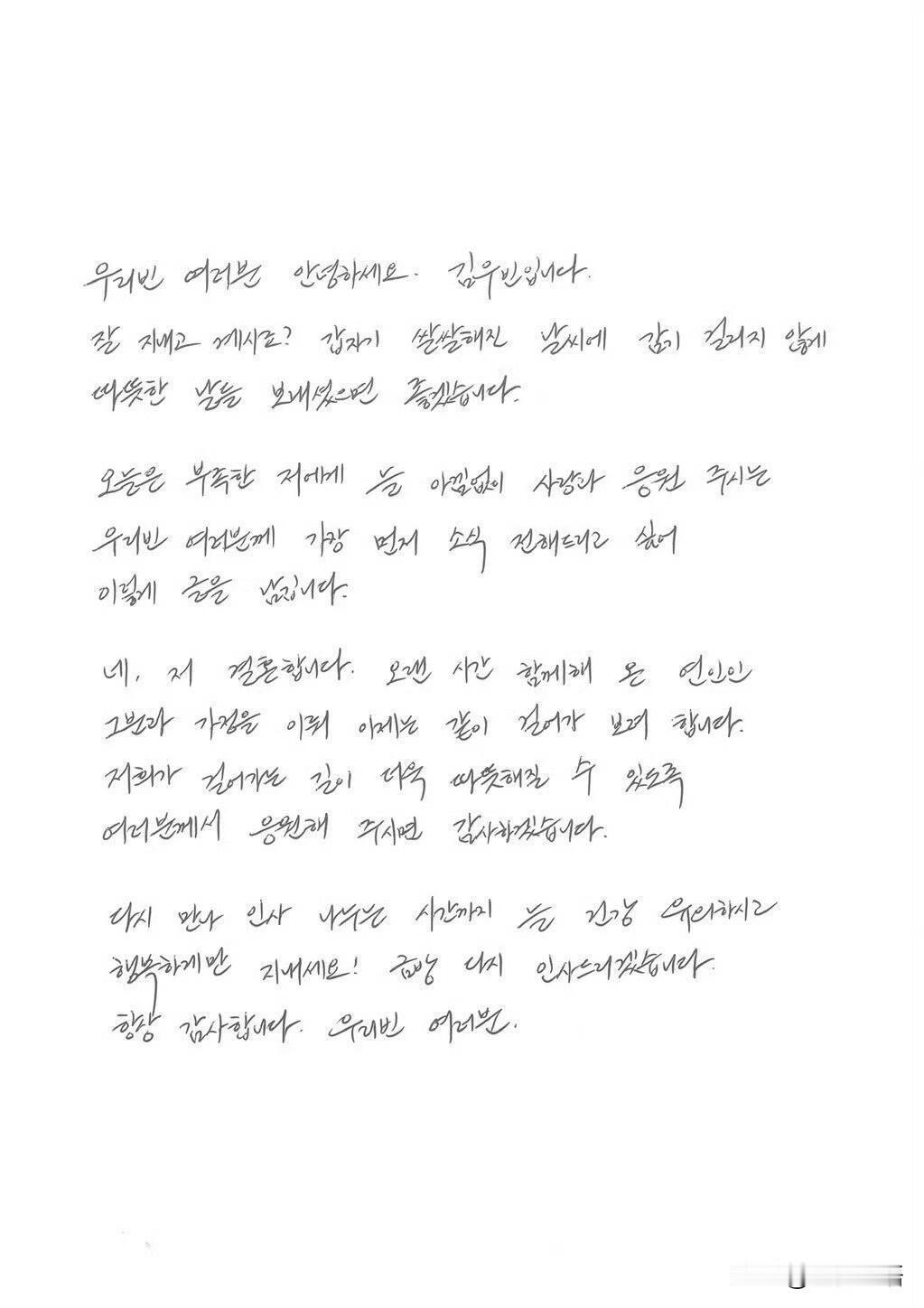 金宇彬申敏儿官宣结婚!十年陪伴终成眷属太好哭了😭 2025年11月20日,金宇彬亲笔手写信官宣结婚,一句“与长时间相伴的恋人组成家庭,携手同行”直接甜哭全网! 这对韩娱神仙情侣的十年爱情路,满是温柔与坚守。2015年因广告相识相恋,公开后一直低调甜蜜。2017年金宇彬确诊鼻咽癌暂停活动,申敏儿果断停工全程陪伴治疗,不离不弃;病愈后两人互相应援,同公司并肩同行,合作《我们的蓝调》撒糖,私下逛街游玩、共同出席活动,每帧画面都藏着爱意。 从青涩恋人到相守家人,他们熬过风雨,把陪伴熬成了最长情的告白。没有轰轰烈烈,却用十年时光证明了爱情最好的模样。 恭喜金宇彬申敏儿!一定要狠狠幸福下去,这份双向奔赴的爱情值得所有祝福✨ 娱乐