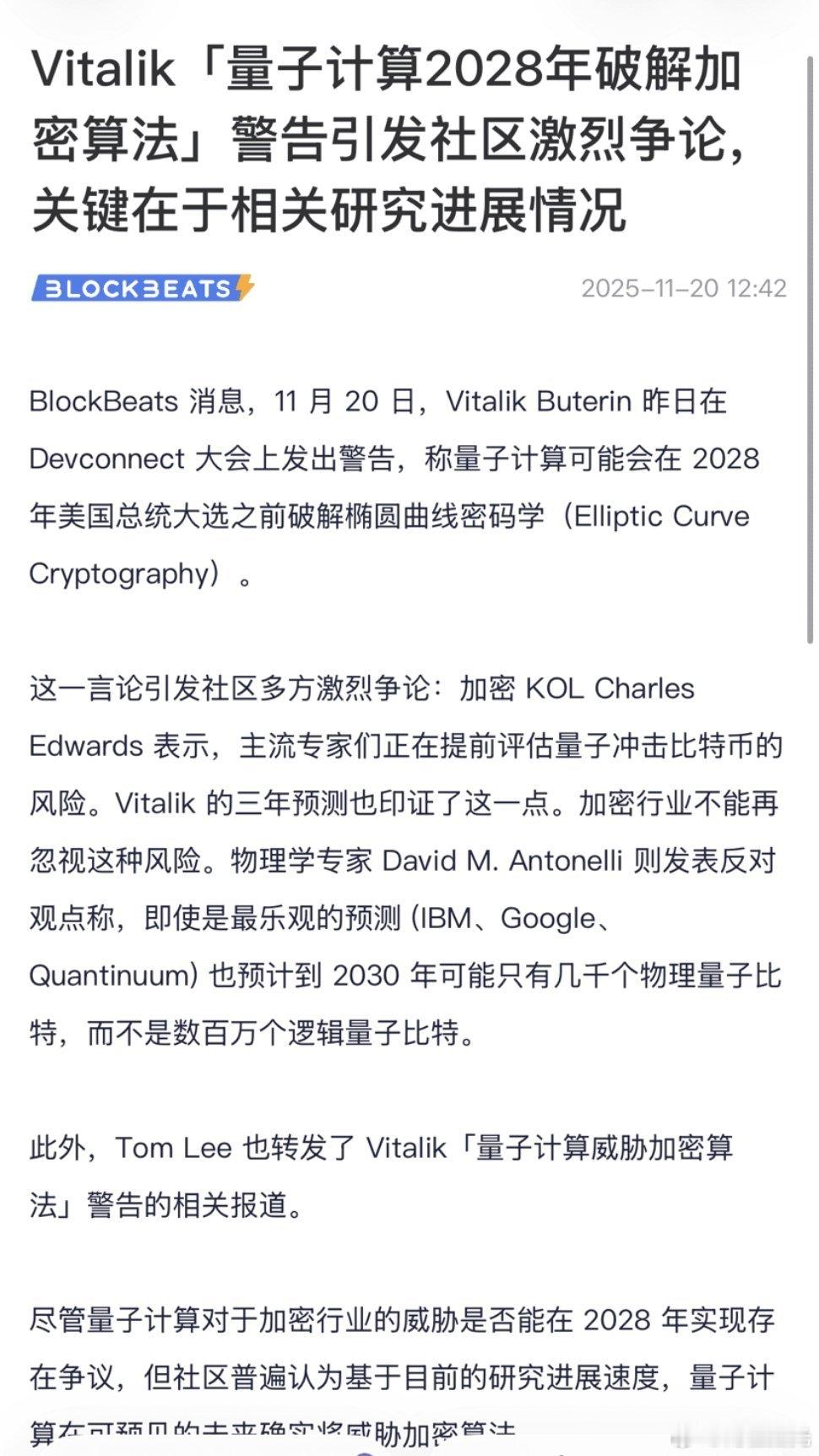 加密货币要归零了?量子计算能攻破吗?还是时间问题区块链技术会迎来升级是风险还是新