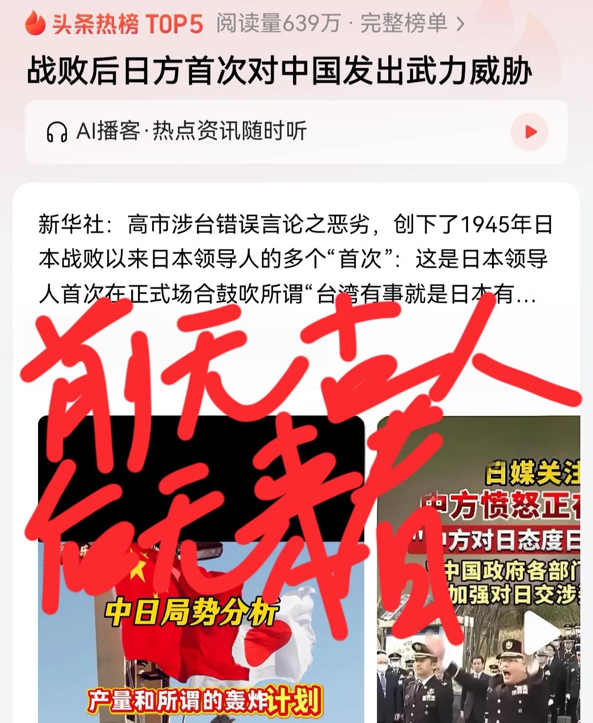 高市早苗要创造一个纪录,前无古人后无来者,小日子第一位女首相也是小日子最后一位首相,以后小日子这个国家应该就没有了! 搞事早苗真会搞事,居然敢武力威胁世界老大,真的是吃了熊心吞了豹胆,下场已注定被灭亡!