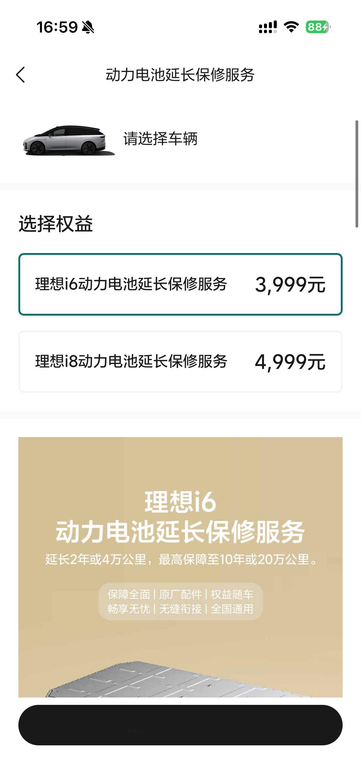 理想i6和i8电池延保价格3999和4999。我很想知道MEGA需要多少钱,5999?等明年这两个车型改款,给老款赠送延保服务,也是一个不错的优惠力度