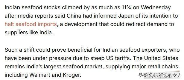 哇塞!印度水产商嗅觉灵敏啊! 在我们暂停进口日本水产品后,阿三们已经迫不及待了,我看印度这海货还是不错的,绝对比日本的便宜,还没有核污染的担忧! 请问:你们有没有动心啊? 有生意头脑的可以动起来啦,去印度进口水产品,趁机会打开中国市场。 印度想对华出口水产品