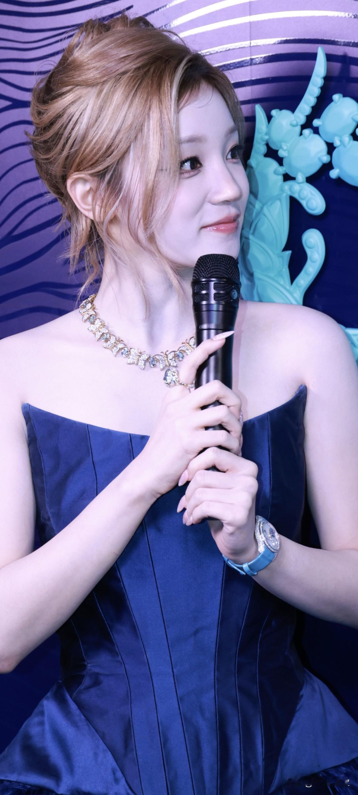 娱乐圈有哪些长腿明星?宋雨琦今日活动生图,一颗剔透蓝宝石,真的像闪闪发光的蓝色小精灵啊,和tiffany好搭啊,完全女神