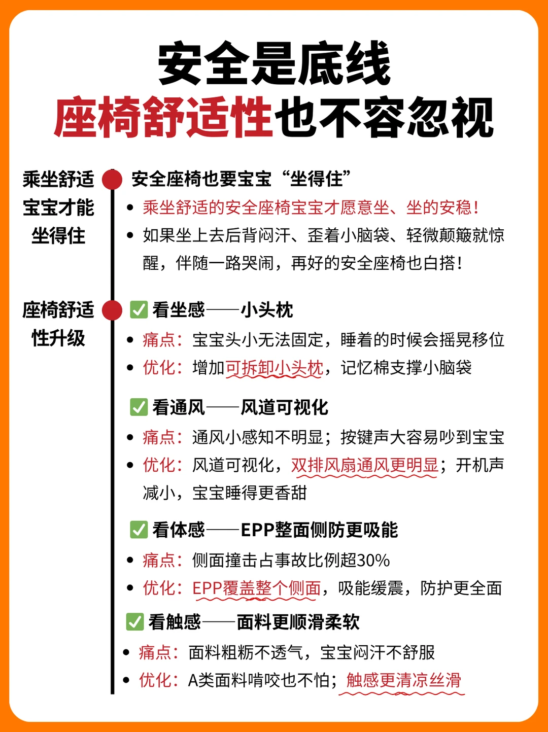 🔺出门乘坐安全座椅,核心诉求是保障宝宝的出行安全,这是不容置疑的!