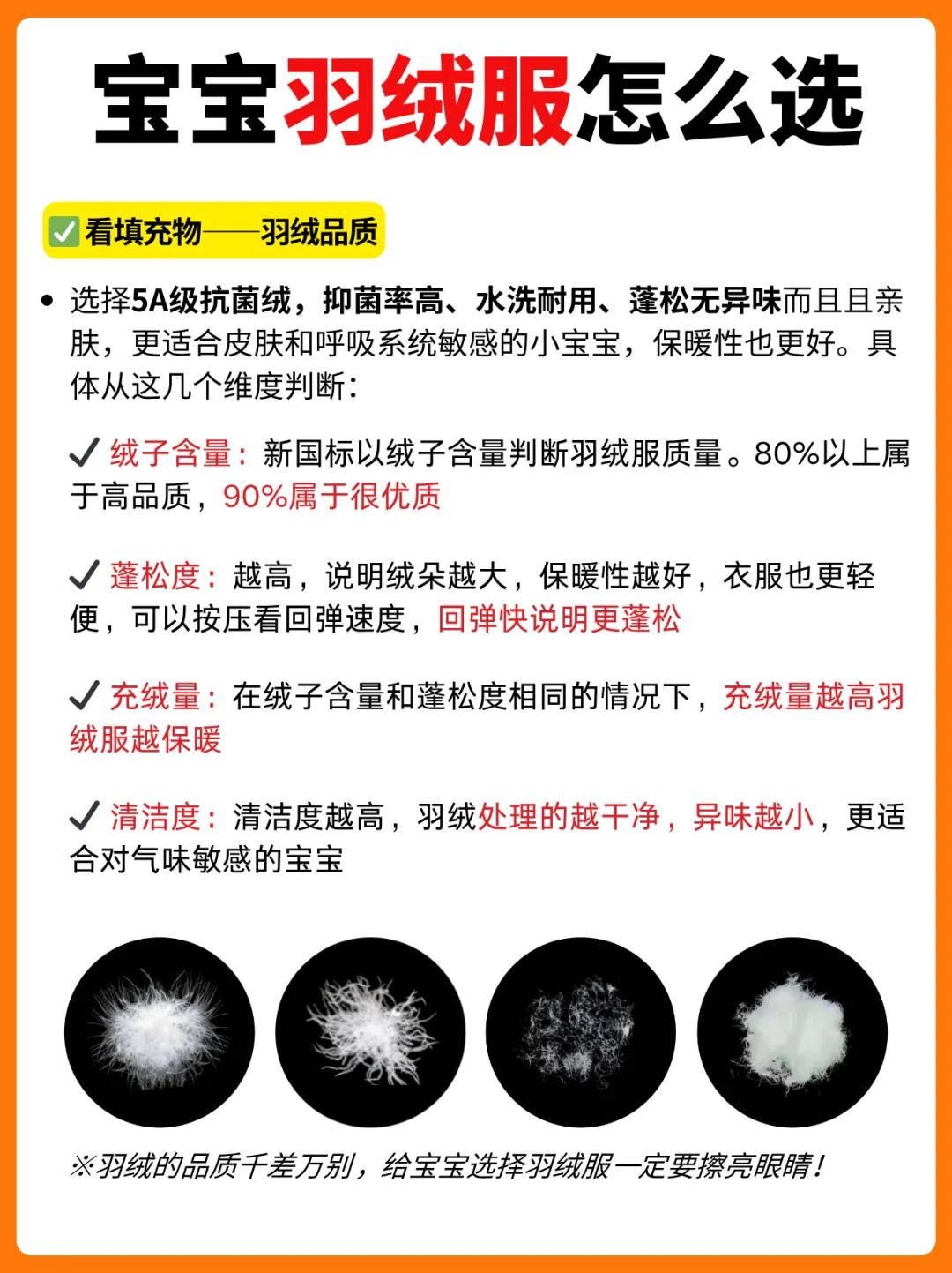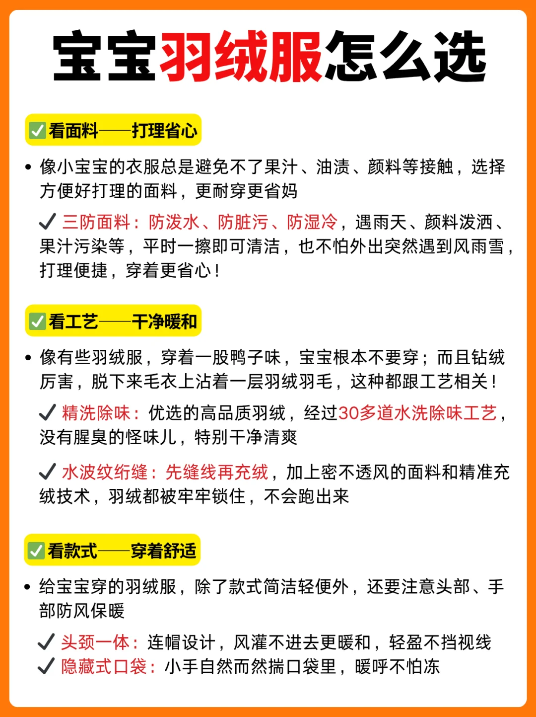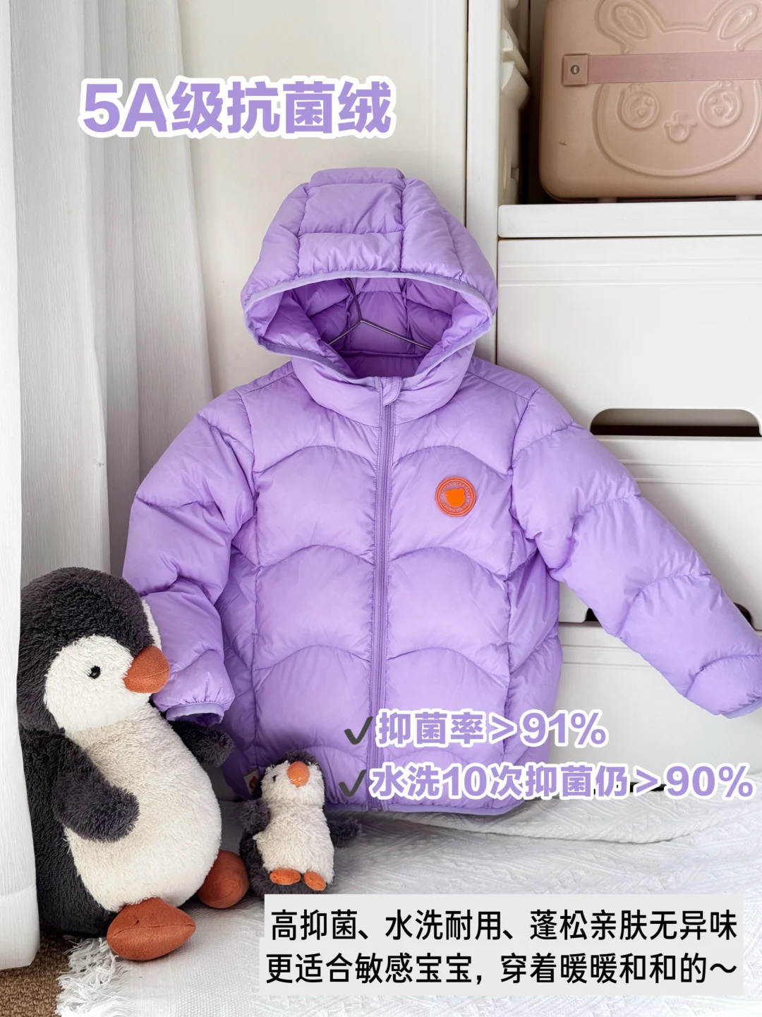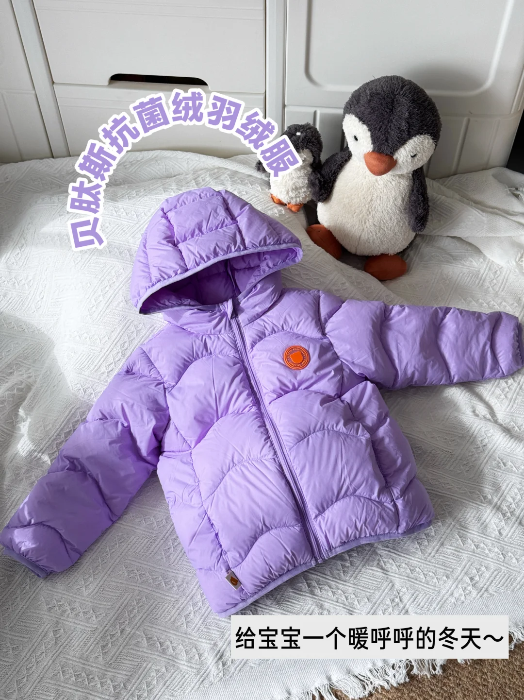 上个星期还在过夏天,猝不及防就降温了!幸好我早早给宝宝准备好了秋冬季的衣柜! 不少妈妈换季都在愁,气温这么波动,宝宝到底应该怎么样穿衣才能少感冒呢?作为一位二胎妈妈,我可真的是积累了不少经验,整理出来给各位新手妈妈! · 🍂宝宝穿衣服的两个原则: ✅ 洋葱穿衣法: 衣服一层层加,一层层脱;贴身层舒适透气吸汗、中层保温、外层防风 内层吸汗:纯棉家居服套装 中层保温:毛衣、加绒卫衣、羽绒马甲等 外层防风:羽绒服、棉服等 其实大人也是一样的穿衣原理! ✅判断宝宝冷热摸后脖颈 宝宝和大人不一样,手脚冰凉不能用来判断冷热,老人感觉到冷也不能由此判断宝宝也冷。可以摸宝宝的后脖颈 温热就是刚刚好 凉了就要加衣服 微微汗就是穿多了 如果穿多了,不要马上脱一件,可以松开扣子、拉链收收汗再减,或者换成一件薄一些的 · 降温前我也已经做足了功课,给宝宝入好了羽绒服。其实选择羽绒服有很多学问,我之前也是踩过不少坑,买的羽绒服一股子鸭子味儿,宝宝鼻子那么灵敏,远远闻到捂着鼻子根本不愿意穿;最夸张的是,之前买的羽绒服绒子不抑菌,宝宝穿了没几天皮肤出了小红点,我还自责了很久,现在我是做足了功课! 羽绒服的选购细节我也整理出来放在了图4、5,妈妈们可以仔细看完再选哦! · 我这次对照着选购攻略给妹妹入的这件贝肽斯抗菌羽绒服,真的符合我对宝宝羽绒服的全部要求!我最看重的就是它填充了抗菌绒,哪怕洗了很多次,抑菌率依旧在线,还是长白山雪域大朵白鸭绒,蓬松保暖而且没有一点异味,不然我家妹妹怎么说都不愿意穿!不小心淋了雨也不担心,防水不渗漏,擦干小水珠就好了!孩子吃饭、喝果泥沾到衣服上那是家常便饭了,纸巾轻轻一擦,一点痕迹也没有,真的太省妈了。 正在准备趁双十一给宝宝入手羽绒服的妈妈们,可以看看这款哦!
