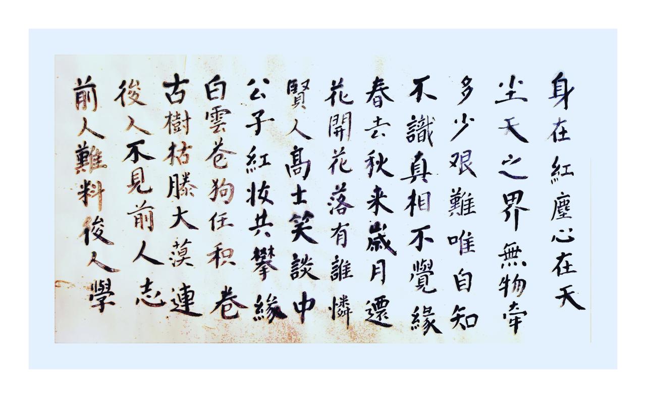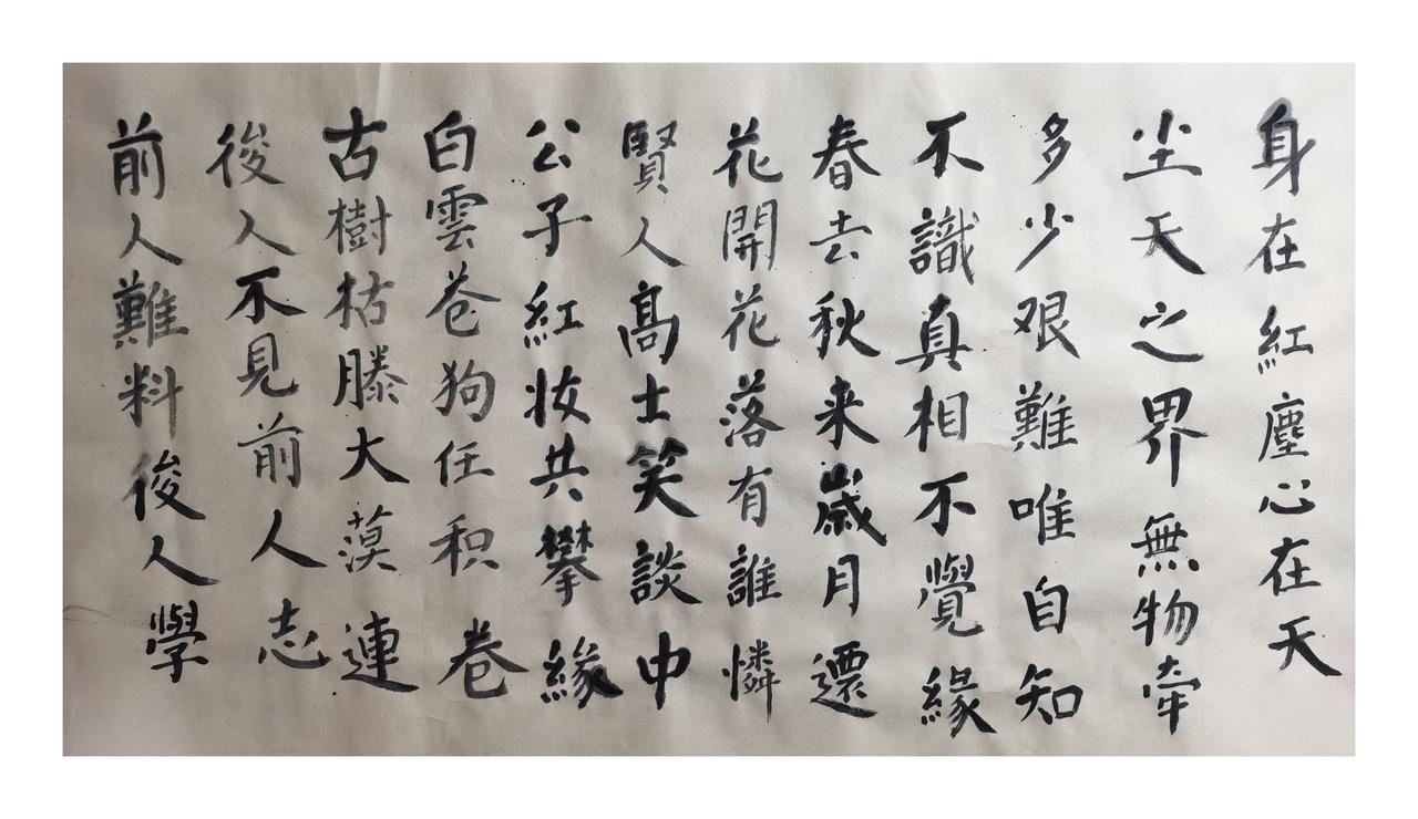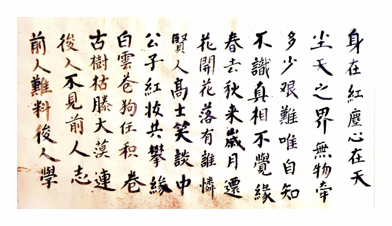 ............. .....大忙似闲闲................. 身在红尘心在天 尘天之界无物牵 多少艰难唯自知 不识真相不觉缘 春去秋来岁月迁 花开花落有谁怜 闲人高士笑谈中 公子红妆总攀缘 白云苍狗任积卷 古树枯藤大漠連 后人不识前人志 前人难料后人学 偶得小诗说心志