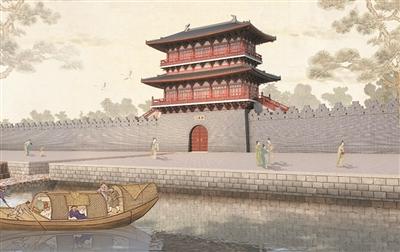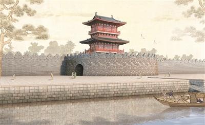 此后,团队结合考古遗迹、文献记载(如《永嘉县志》中提及的“谢公楼”),并参考《清明上河图》等同时代画作的建筑样式,启动数字重建工作。首先精准复原的是望江拱城门及城楼:唐代时,城门为“双门+谯楼”配置;到五代至宋元时期,演变为单门结构;南宋时为防洪防御,又进一步加固。