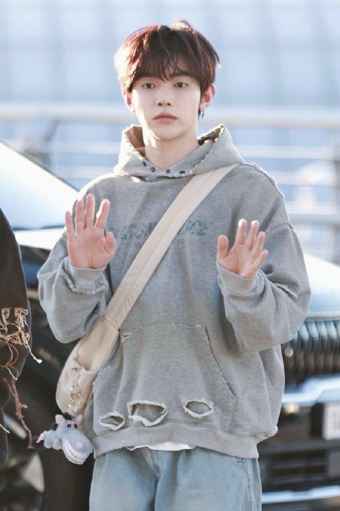 章昊灰色破洞卫衣look,章昊今日机场路透