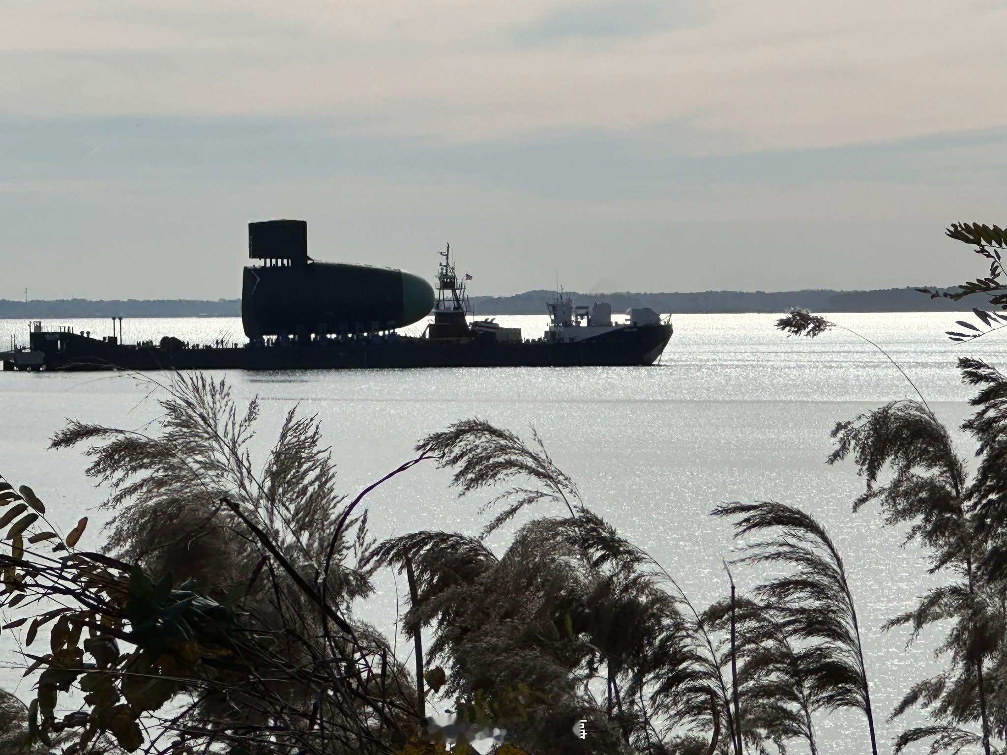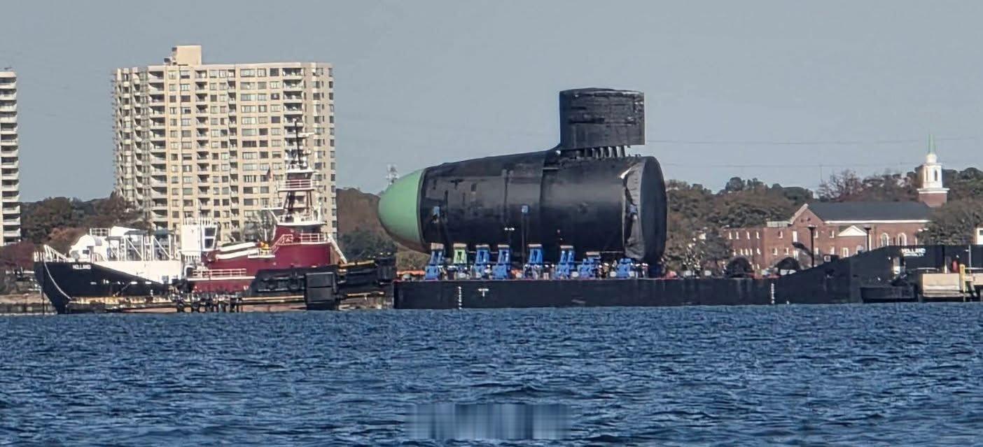 2025 年 11 月 18 日,美国海军新建的“哥伦比亚”级弹道导弹核潜艇“哥伦比亚特区”号(SSBN 826)的前段从弗吉尼亚州纽波特纽斯出发,驶往康涅狄格州。