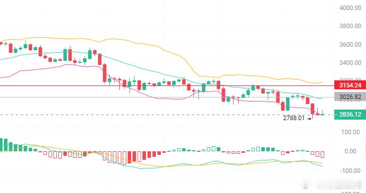 11.21姨太早间丝路昨天晚间提醒大家,姨太南下趋势强烈,没有一点反弹动能,真正的底部还没有到来,小时线来看,布林带中轨压的死死的,下轨支撑根本抗不住,MACD也根本没有反弹迹象,日内只能以高箜为主,2780这个支撑要再一次破的话,很可能会走到2690的位置。日内操作:2900附近箜,木标2780,破位看2690。