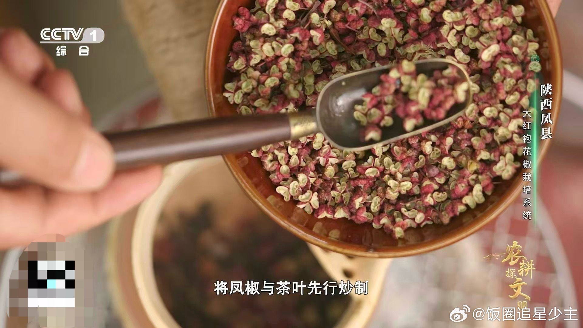 陕西凤县凤椒(花椒之王)邂逅茶叶,羌族传统工艺同炒慢炖,加面果、腊肉丁等食材煮1
