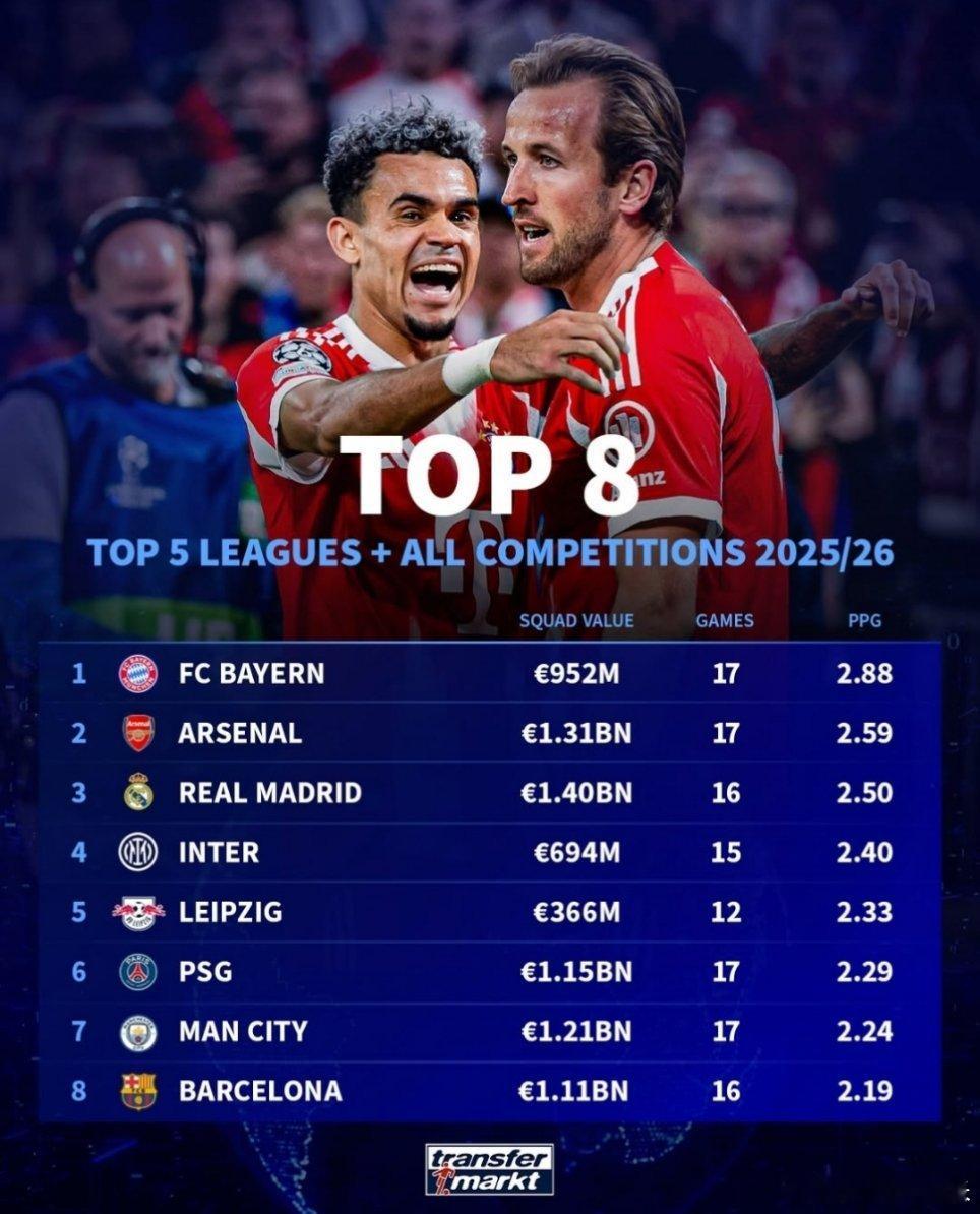 五大联赛截至目前场均拿分最高的8支球队,国际米兰排名第四。💙🖤
