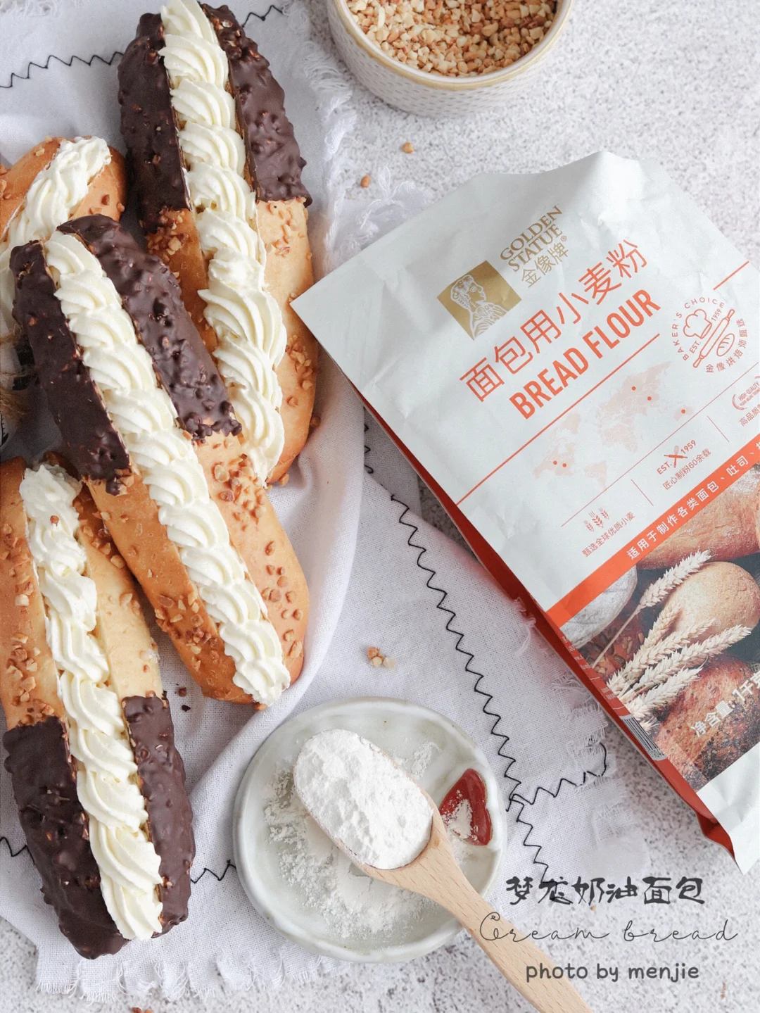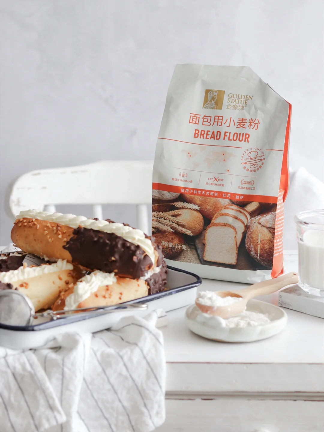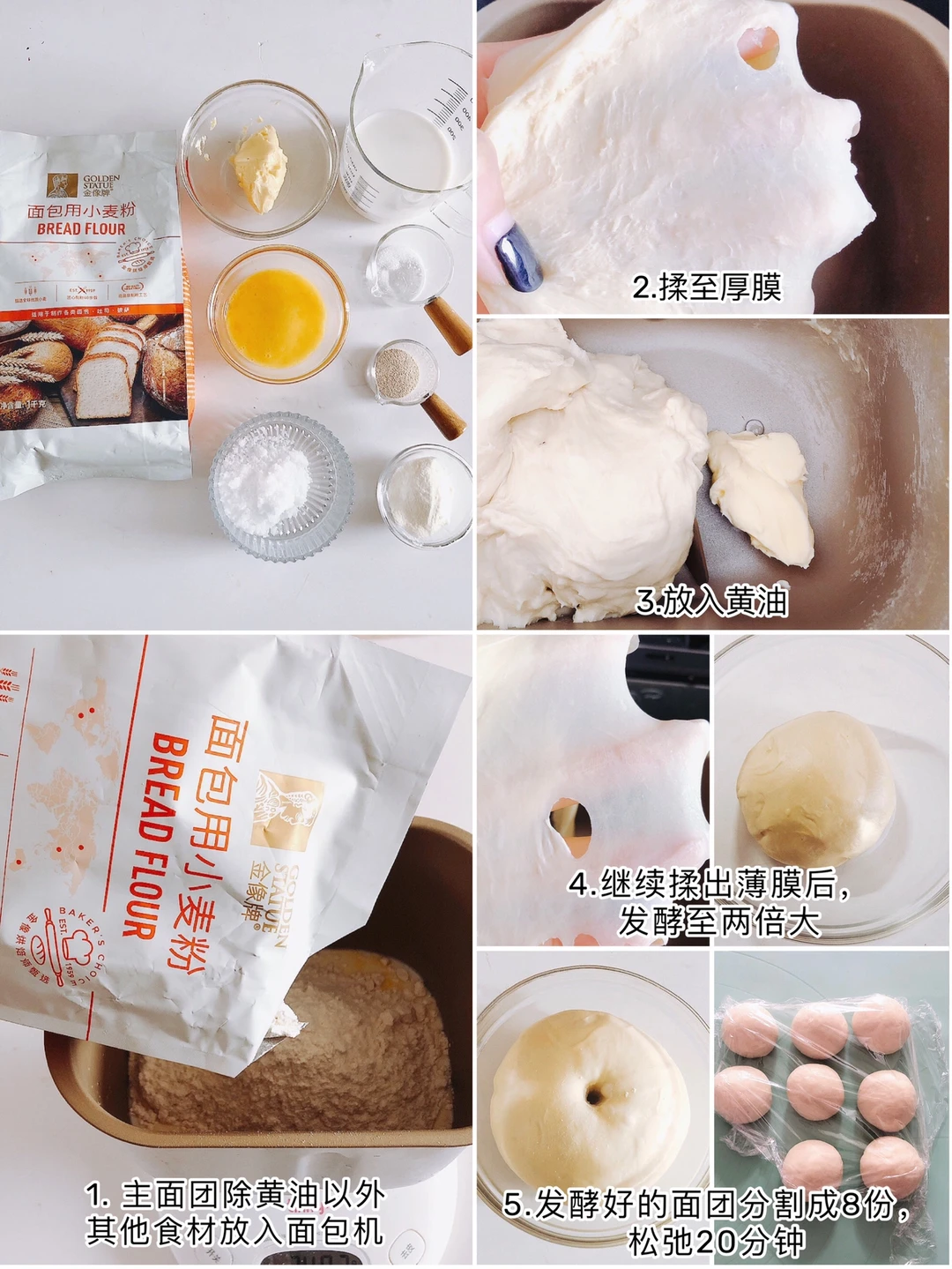 ‼️因为不同品牌面粉的吸水性不同,所以145g的牛奶要适当增减哦,做面包我习惯用金像高筋面粉,进口的小麦粉质细腻,颜色自然白,吸水性好很容易出膜,用着特别顺手,做出来的成品饱满又好吃,尤其推jian新手宝宝