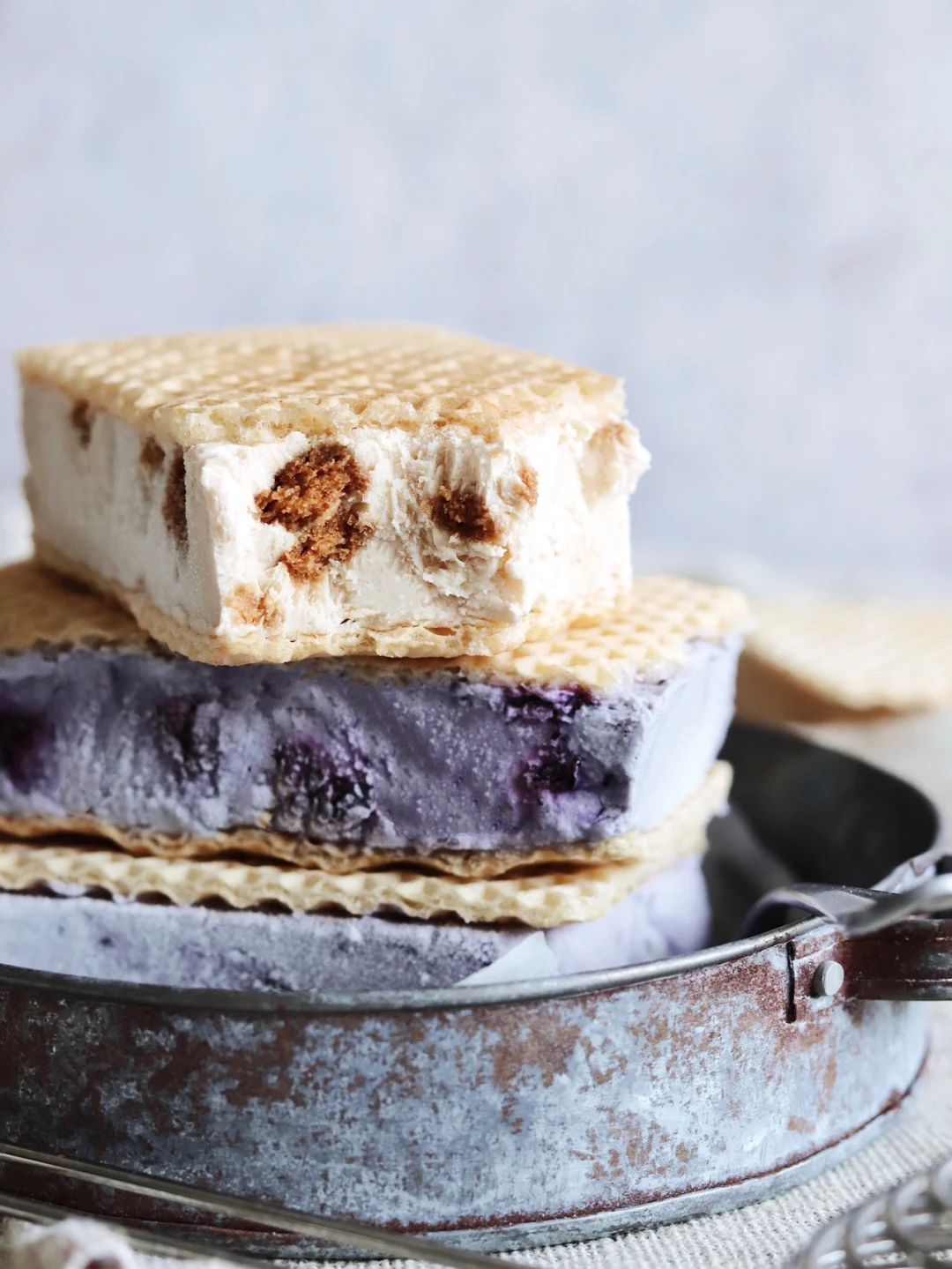 ✔️蓝莓口味的,只需要把焦糖酱换成细砂糖,焦糖饼干碎换成蓝莓酱,做法都是一样的哈。