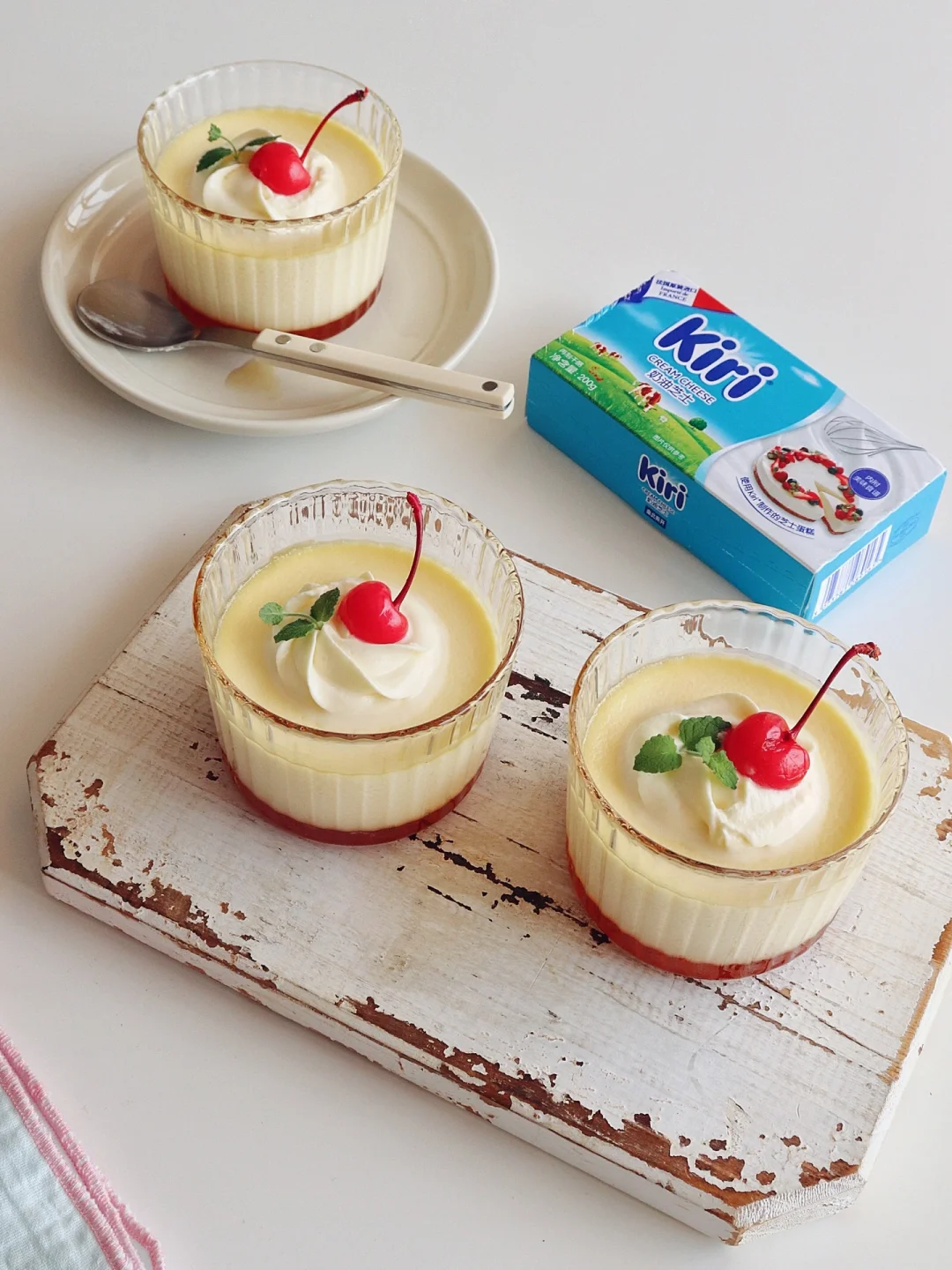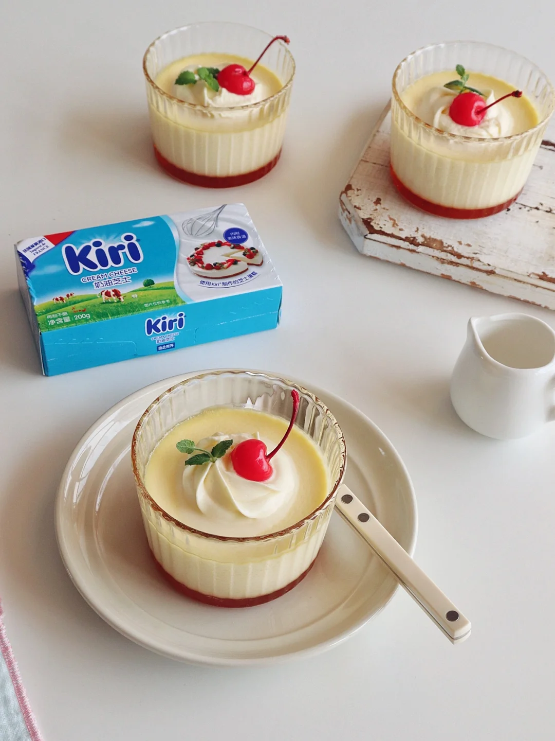 ‼️想要布丁好吃,奶油奶酪是关键哦,我用的是拥有150余年历史的Kiri奶油芝士,我平时做甜品都是用的这一款,性状稳定,性能优越。一打开包装就可以闻到浓郁的奶香,口感也是极致顺滑哦