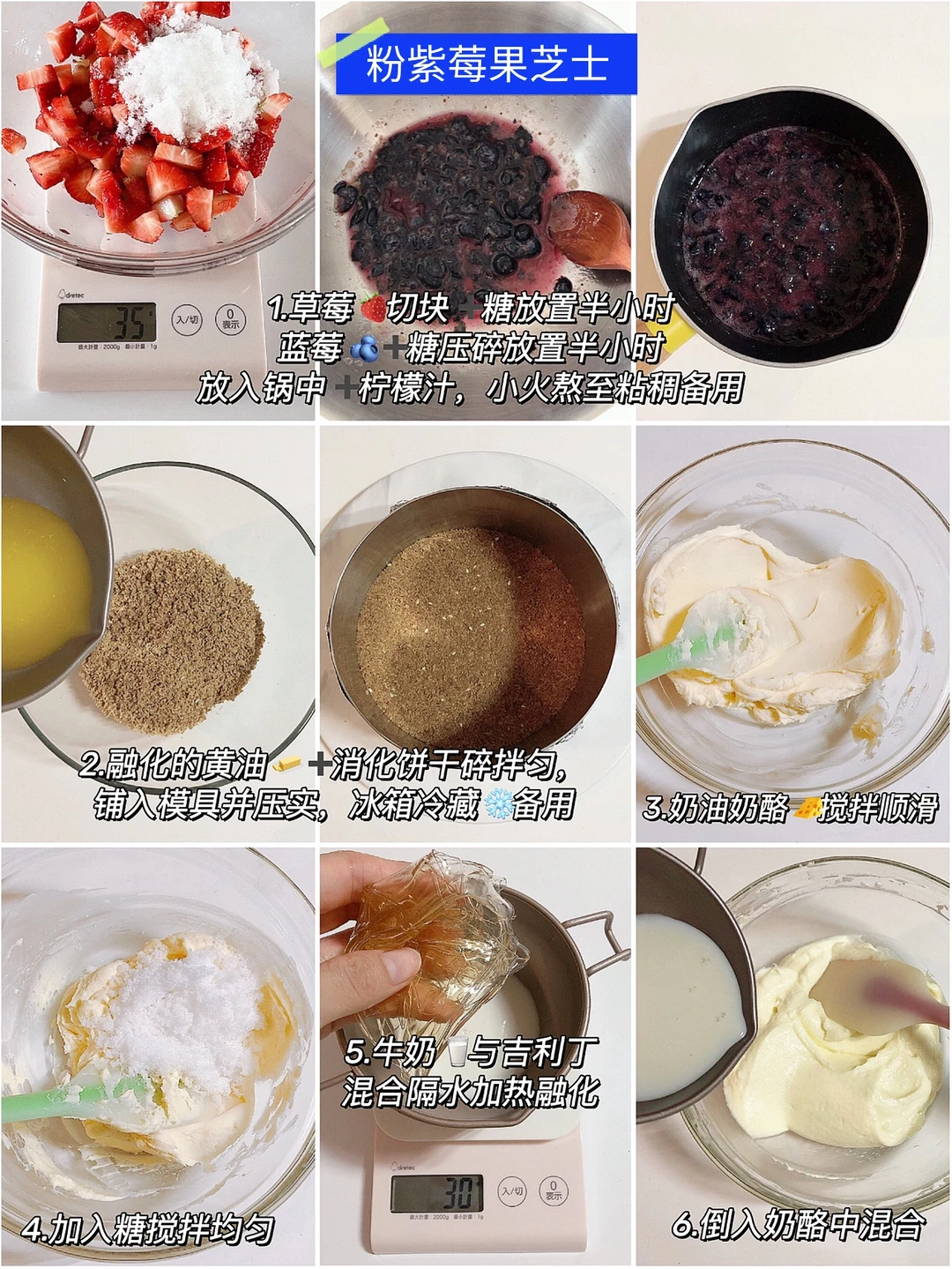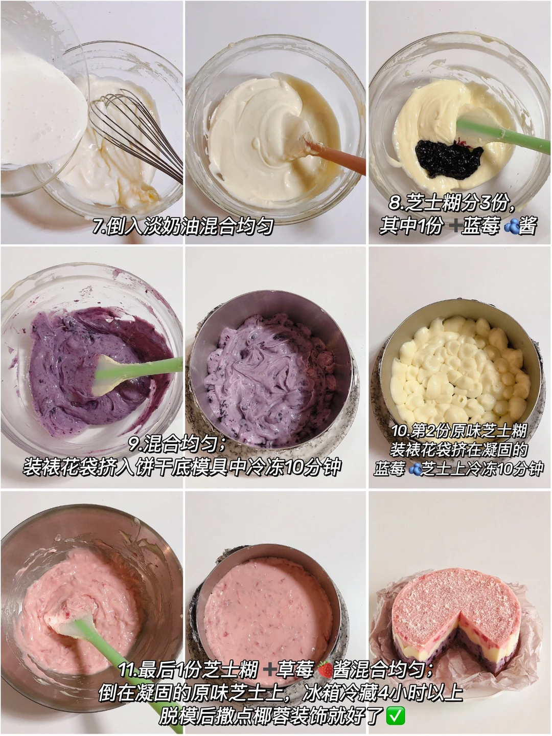 ✔️粉紫莓果芝士:(做法见图8️⃣和9️⃣)