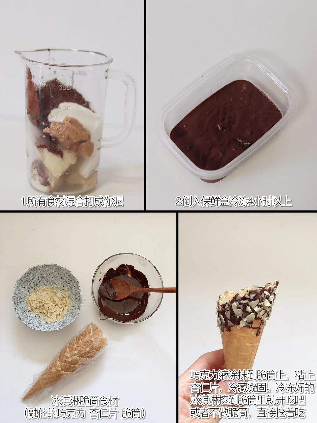 ❶所有食材放到一起打成泥,装保鲜盒冷冻4小时以上。(不装脆筒的小伙伴,冷冻好以后就直接可以吃了)
