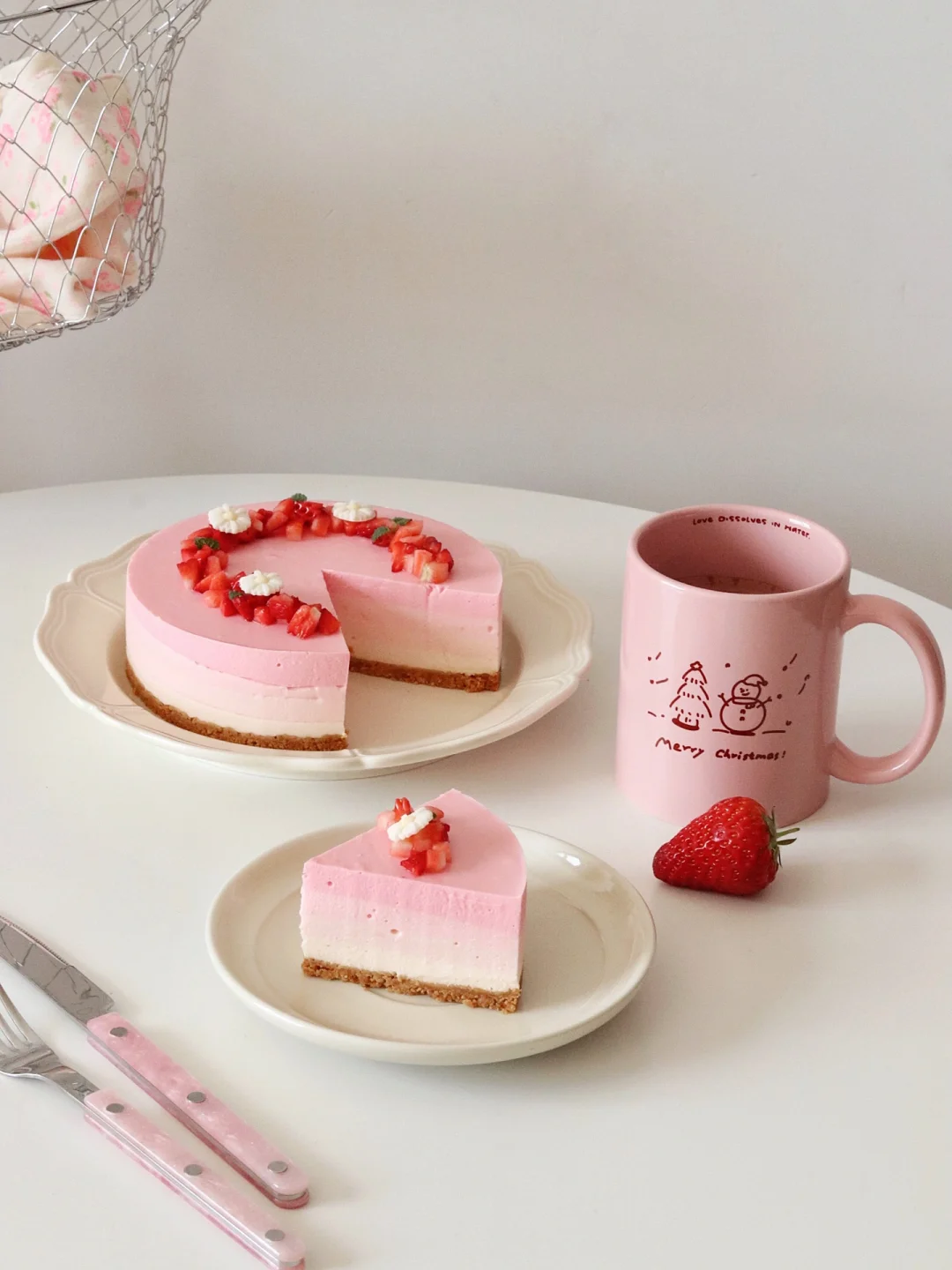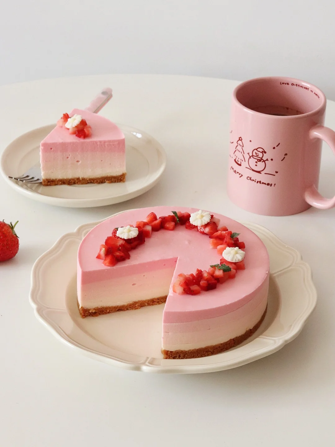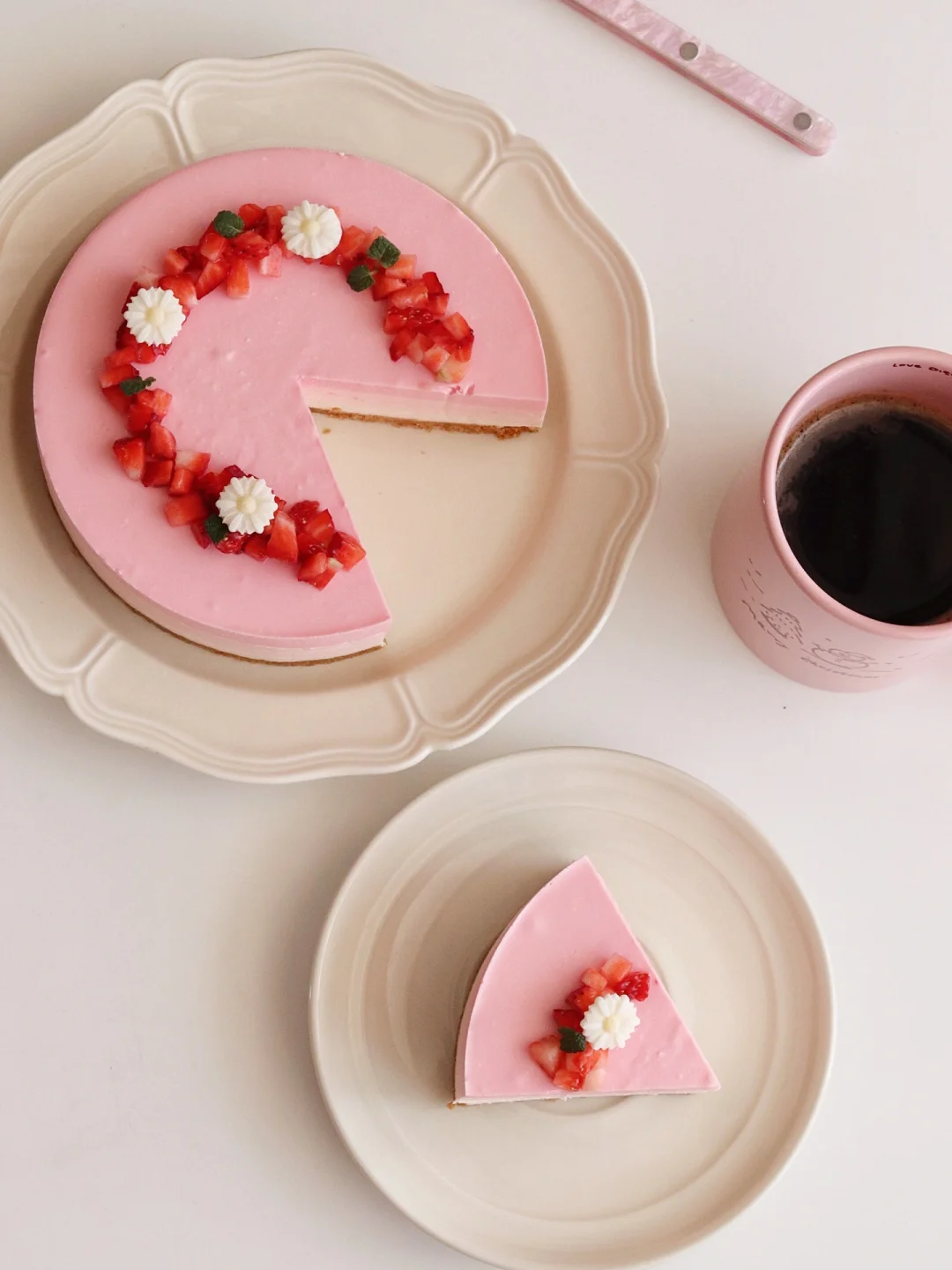 奶油奶酪350g|糖50g|草莓酱200g|牛奶50g|吉利丁片10g|淡奶油200g|可食用粉色素