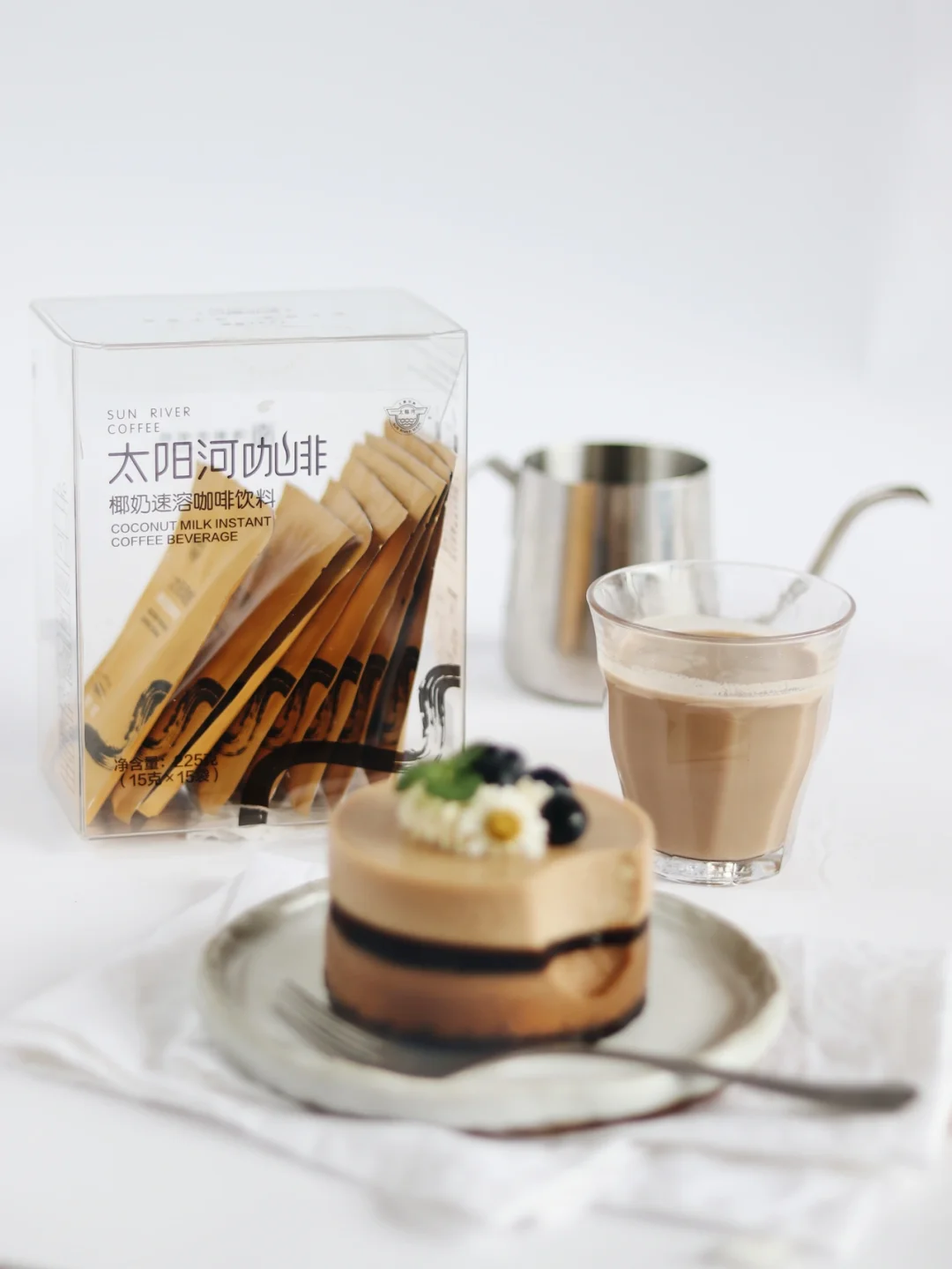 ✔️太阳河咖啡的 椰奶速溶咖啡饮料是我最近一直在喝的,我喜欢它醇厚的咖啡中还带有椰子的清新奶香味,将它融入到甜品中,也会增加口味的层次感哦。
