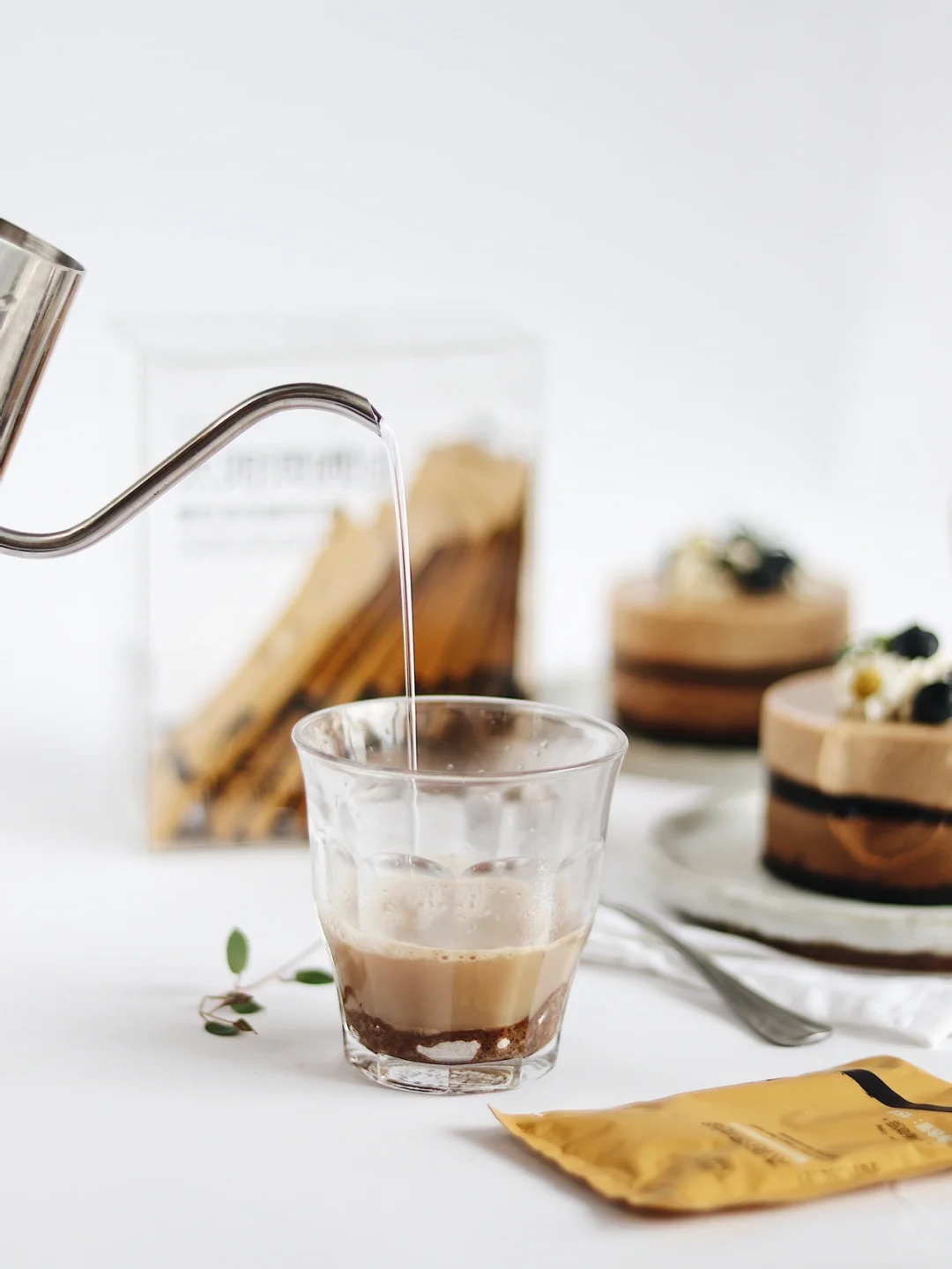 ❻做咖啡冻:3g黑咖啡粉加60g温热的水调成咖啡液,趁热放入吉利丁搅拌融化。倒入凝固好的黑咖啡慕斯上面,继续冷冻10分钟至凝固。