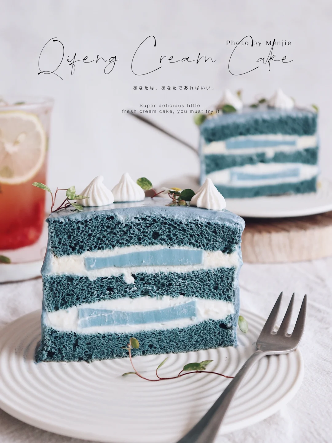 淡奶油100g➕细砂糖5g➕适量蝶豆花粉 (抹面用)