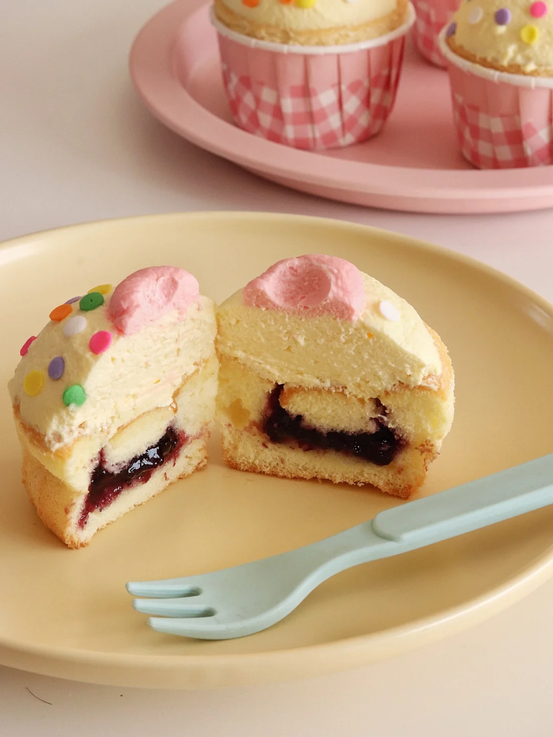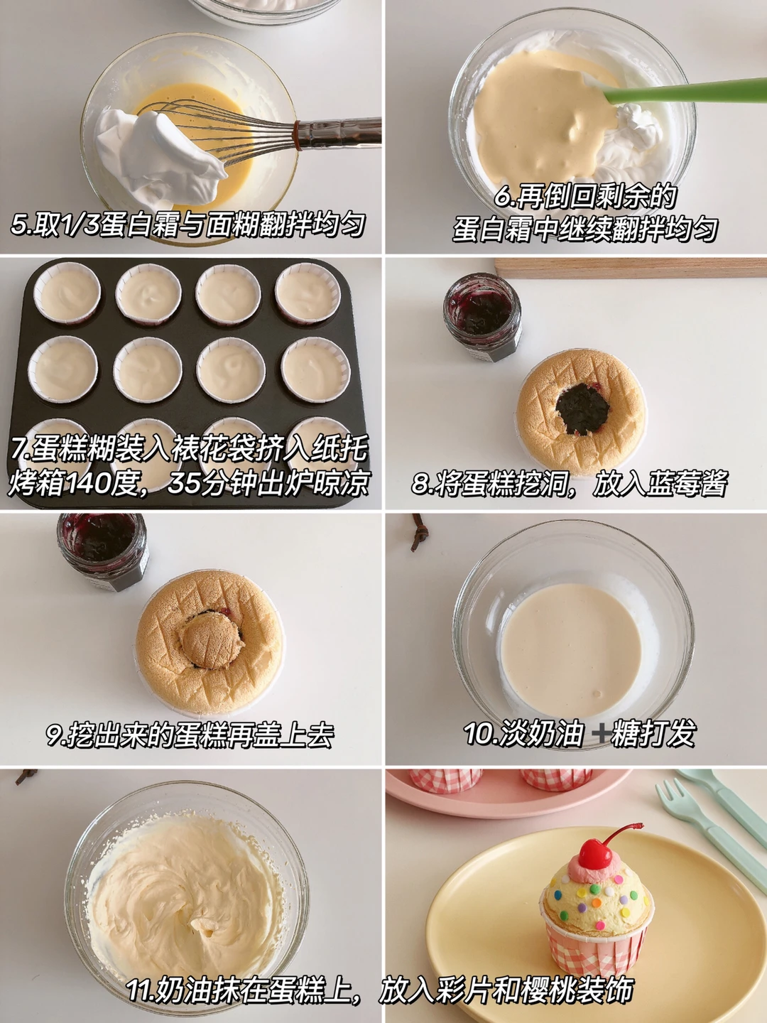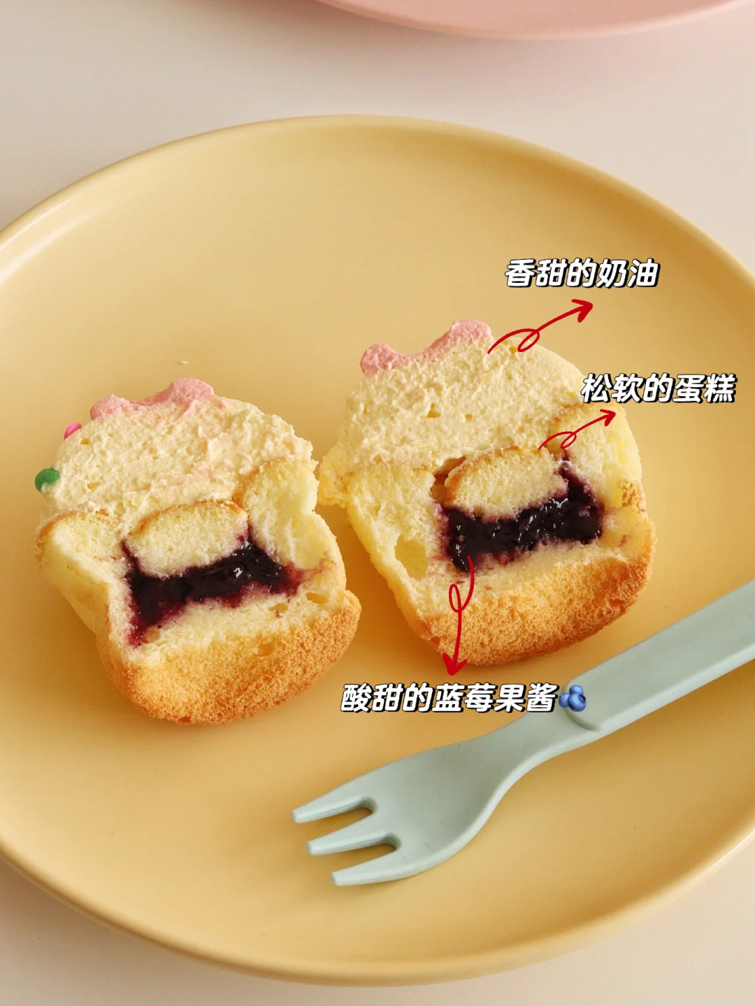 这个纸杯蛋糕我自己超级爱,样子可可爱爱,蛋糕中间还加了蓝莓🫐酱,吃起来酸酸甜甜再加上蛋糕本身松软又香甜,真的可以一口惊艳🤩