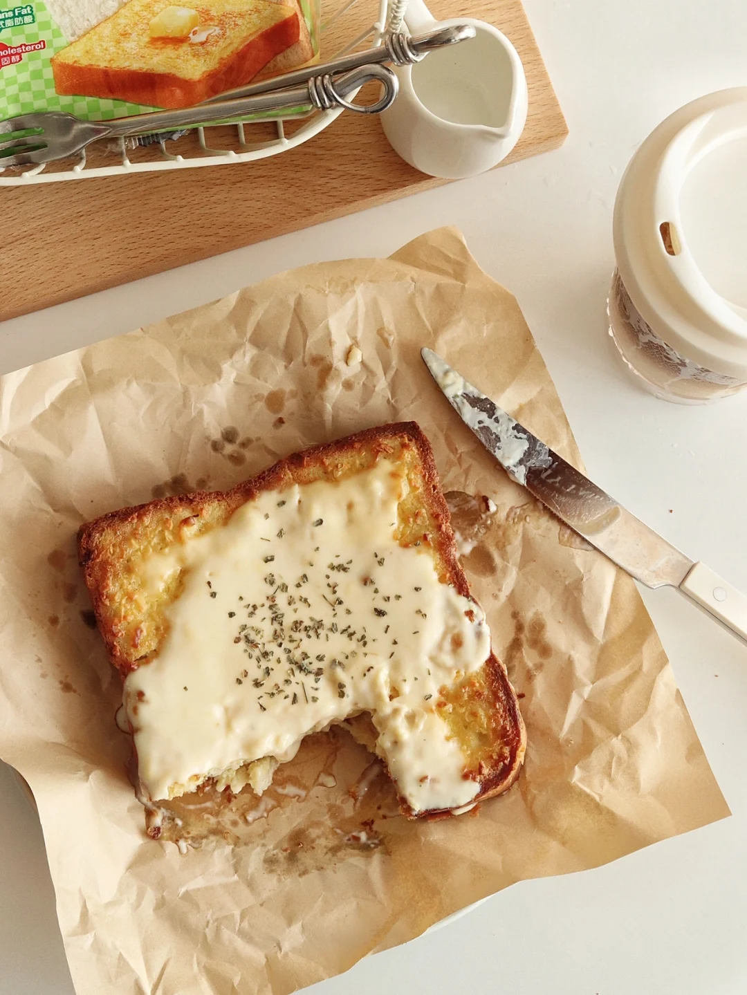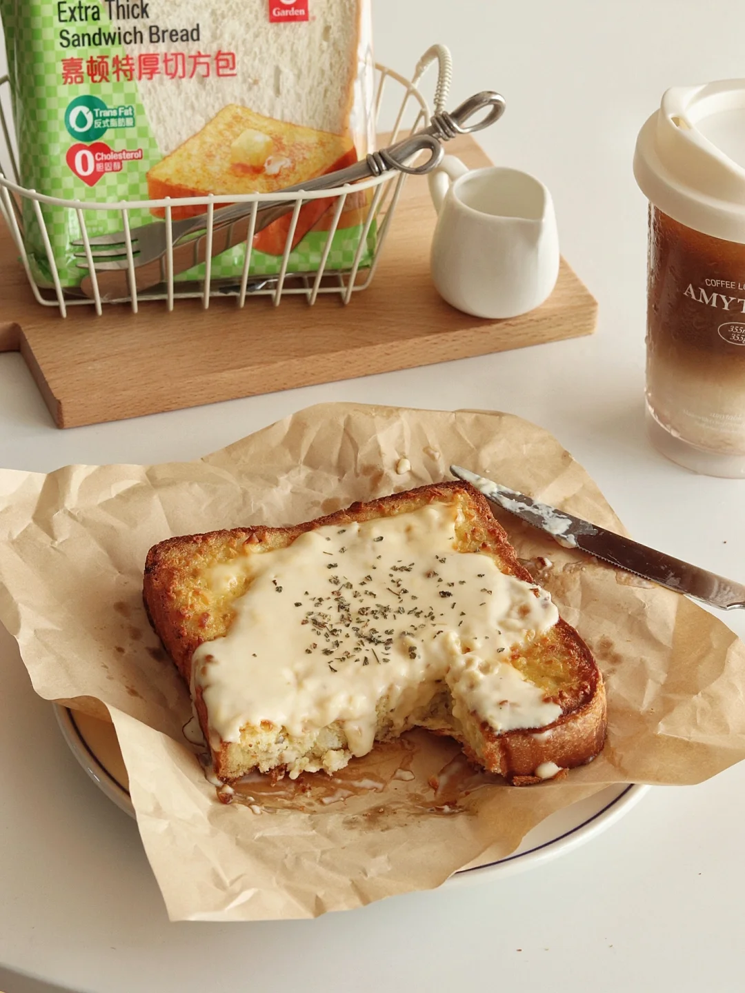 还有谁没吃过这款黄油蒜香厚吐司⁉️赶紧安排上,真滴太香太好吃了!外脆内软,配上牛奶芝士酱,一整个厚吐司分分钟就吃光了🤣
