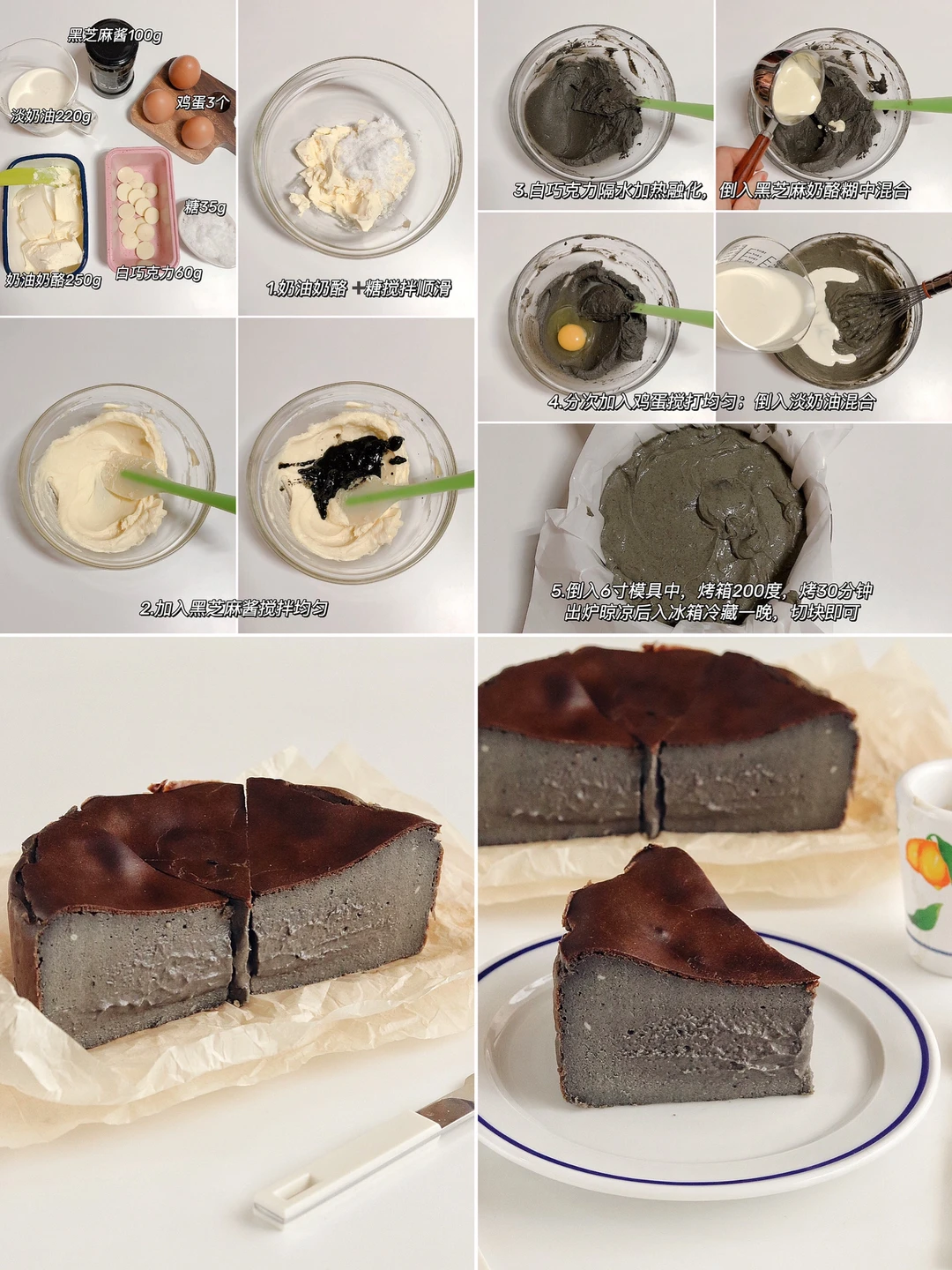 奶油奶酪 250g|糖 20g|全蛋 3个|淡奶油 230g|黑芝麻酱 100g|白巧克力 80g