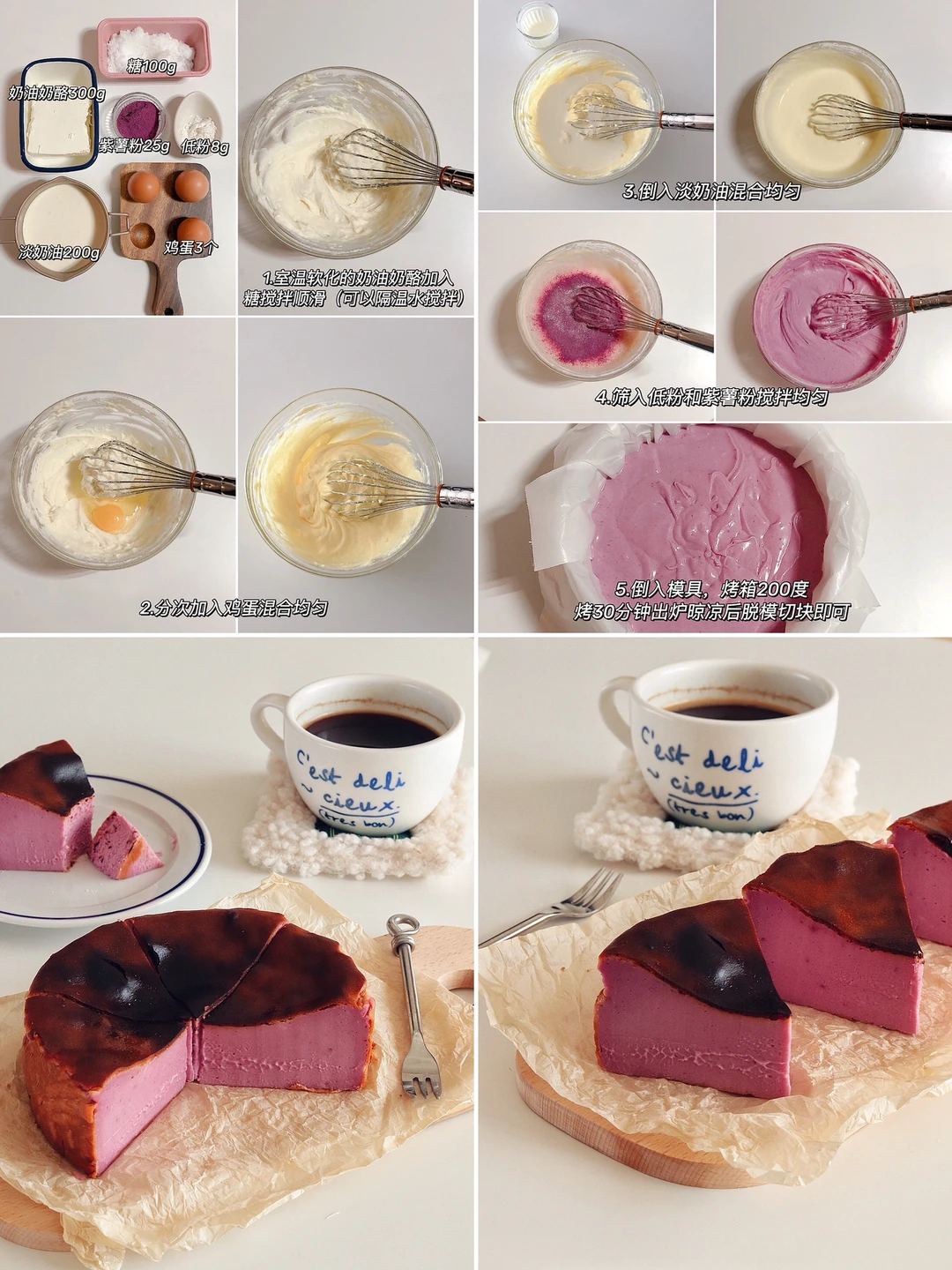 奶油奶酪 300g|糖 100g|全蛋 3个|淡奶油 200g|低筋面粉 8g|紫薯粉 25g