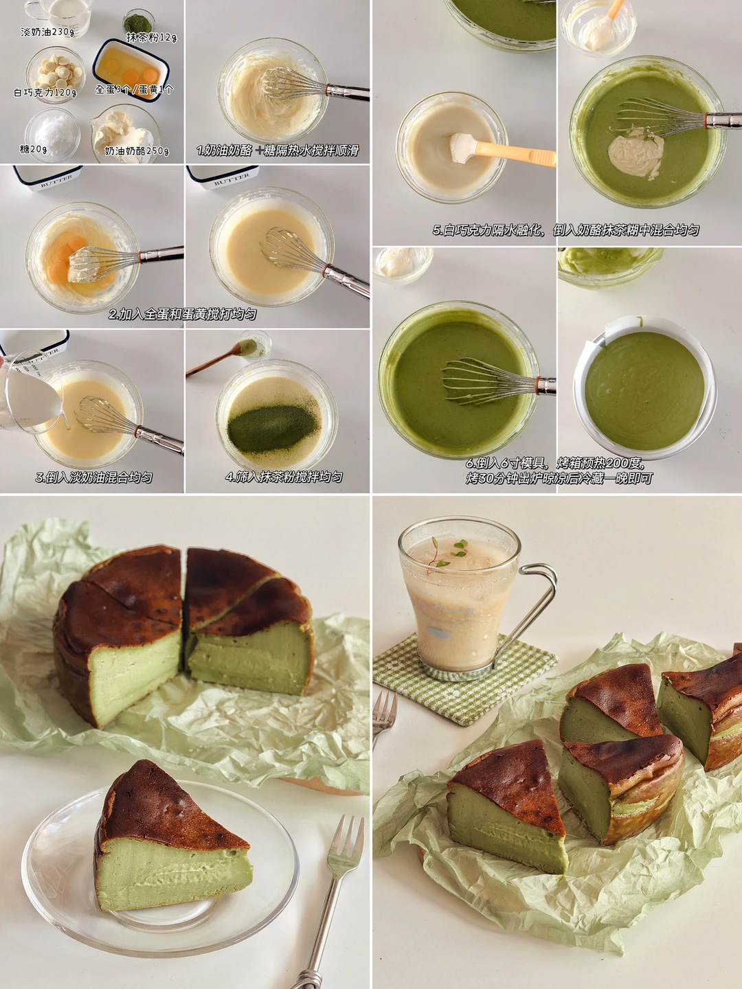 奶油奶酪 250g|糖 20g|全蛋 3个|蛋黄 1个|淡奶油 230g|抹茶粉12g|白巧克力 120g