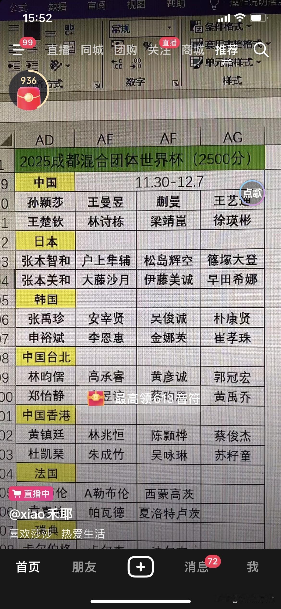国乒:王楚钦林诗栋梁靖崑徐瑛彬 日本:张本智和户上隼辅、松岛辉空、篠塚大登 法国:小勒布伦、大勒布伦、西蒙·高茨 成都混合团体世界杯国乒男队真不好打。日本队法国队都很强。梁靖崑腰还有伤。虽然有王楚钦林诗栋但是还要上第三个人。这第三个人不是梁靖崑就是徐瑛彬。徐瑛彬可能打男双。 好在是混合动团体世界杯。还有莎莎和曼昱。