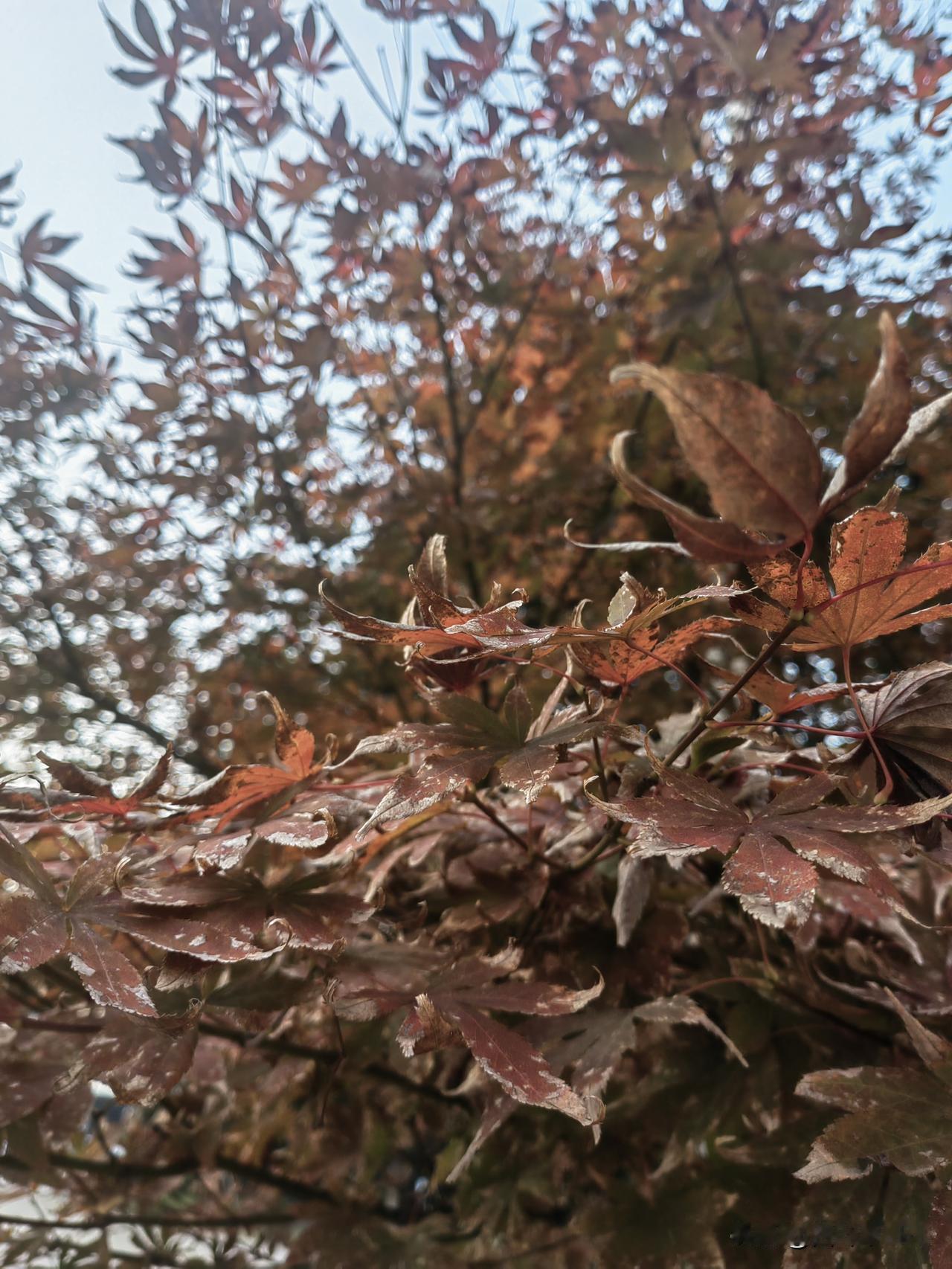 天气越来越冷了,树叶也有些枯了,没以前那么翠绿了。