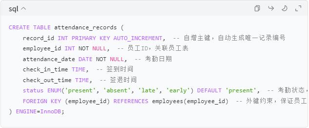 MySQL考勤记录查询的两大神器 InnoDB和Memory,,你用对了吗? MySQL考勤记录查询实战:从入门到精通的必备技巧 MySQL考勤记录查询全攻略:手把手教你玩转常用库 咱今天来聊聊MySQL里特别实用的考勤记录查询功能。在企业管理中,考勤记录可是个大事儿,毕竟和工资、绩效都挂钩呢!MySQL有两个常用的库在这方面特别厉害,一个是大家熟悉的InnoDB,另一个是Memory。这俩库在处理考勤记录时各有千秋,接下来咱就好好唠唠。 两大核心存储引擎深度解析 InnoDB:数据安全的“守护者” InnoDB可是MySQL的老大哥了,它就像一位严谨的管家,把数据管理得井井有条。为啥这么说呢?因为它支持事务处理,啥是事务处理呢? 打个比方,比如月底算工资的时候,需要同时更新考勤表和薪资表,要是中间出了问题,事务能保证这俩表要么都更新成功,要么都回到原来的状态。 不会出现一半成功一半失败的情况,这就大大保证了数据的完整性。 在考勤场景里,员工的考勤记录一旦录入,可不能随随便便就改了,尤其是涉及到请假、加班这些影响工资的记录,必须得保证数据的安全可靠。 比如公司规定考勤记录修改需要审批流程,InnoDB的事务特性就能确保在审批通过前,原始数据不会被随意篡改,这对于需要长期保存、作为员工考核依据的考勤数据来说,简直太重要了。 Memory:实时查询的闪电侠 Memory库,听名字就知道,它是把数据存放在内存里的。 这就好比把东西放在伸手就能拿到的地方,查询速度那叫一个快,就像闪电一样。 不过呢,它也有个小缺点,就是一旦服务器重启,数据就没了。 就像你把东西放在临时的口袋里,口袋破了或者你换衣服了,东西就没了。所以它比较适合那种临时存储、实时查询的场景, 核心特性对比表 实战操作:从建表到查询的全流程演示 表结构设计背后的学问 创建考勤记录表时,字段的设计可是有讲究的。 员工ID肯定得有,这是唯一标识每个员工的身份证;考勤日期用DATE类型,只记录年月日,简单明了。 签到和签退时间用TIME类型,精确到时分秒,这样才能准确判断是否迟到早退。 状态字段用ENUM类型,限定只能是present(正常)absent(缺勤)late(迟到)early(早退) 这里的外键约束很重要,它能确保录入的员工ID在员工表中是存在的,不会出现无效的员工ID,保证数据的一致性。 Memory表创建:实时查询的利器 这里用了MONTH和YEAR函数来提取日期中的月份和年份,方便按月份查询。 场景2:统计部门月度迟到人数 假设部门ID为101的部门,想知道2025年5月有多少人迟到,就需要关联员工表和考勤表: 多表连接查询在实际应用中很常见,通过关联条件把不同表中的数据结合起来,就能得到更丰富的信息。 场景3:找出当天未签退的异常记录 员工有时候忘记签退,这时候签退时间就是NULL,我们需要把这些记录找出来: CURDATE()函数可以获取当前的日期,这样就能实时找出当天的异常记录。 性能优化:数据量大也能快如闪电 索引:查询加速的“加速器” 索引就像书的目录,有了目录,找内容就快多了。如果经常根据员工ID查询考勤记录,就给employee_id字段创建索引: 如果经常按考勤日期查询,就给attendance_date字段创建索引: 还有联合索引,比如经常同时按员工ID和考勤日期查询,可以创建联合索引: 创建索引后,记得用EXPLAIN语句分析查询执行计划,看看索引有没有生效,比如: 如果Extra列显示Using index,说明索引生效了。 分区:大数据量的分而治之 如果考勤记录有几百万条,甚至更多,这时候分区就很有用了。分区就像把一个大仓库分成多个小仓库,按年份或者月份分区,比如按2025年5月分区: 这样查询2025年5月的数据时,就只需要在p_202505这个分区里查找,大大提高了查询速度。 定期清理:给数据库瘦身 把一年前的考勤记录归档到其他地方,比如备份到历史表或者外部存储,只保留最近一年的数据在主表中。可以写一个存储过程,每个月自动清理过期数据: 然后设置定时任务,比如每天凌晨执行这个存储过程,保持主表的数据量不会太大,查询速度自然就快了。 总结:选对工具,玩转考勤查询 通过今天的分享,咱们了解了InnoDB和Memory两个库的特点和适用场景,学会了创建表、插入数据、编写各种查询语句,还掌握了性能优化的技巧和常见问题的解决方法。 在实际使用中,根据需求选择合适的存储引擎,合理设计表结构,创建必要的索引,做好数据优化,就能让MySQL在考勤管理中发挥出最大的作用。 记住,MySQL这玩意儿,只要你多琢磨,多动手试试,肯定能玩转它!下次遇到考勤查询的问题,相信你一定能轻松搞定!