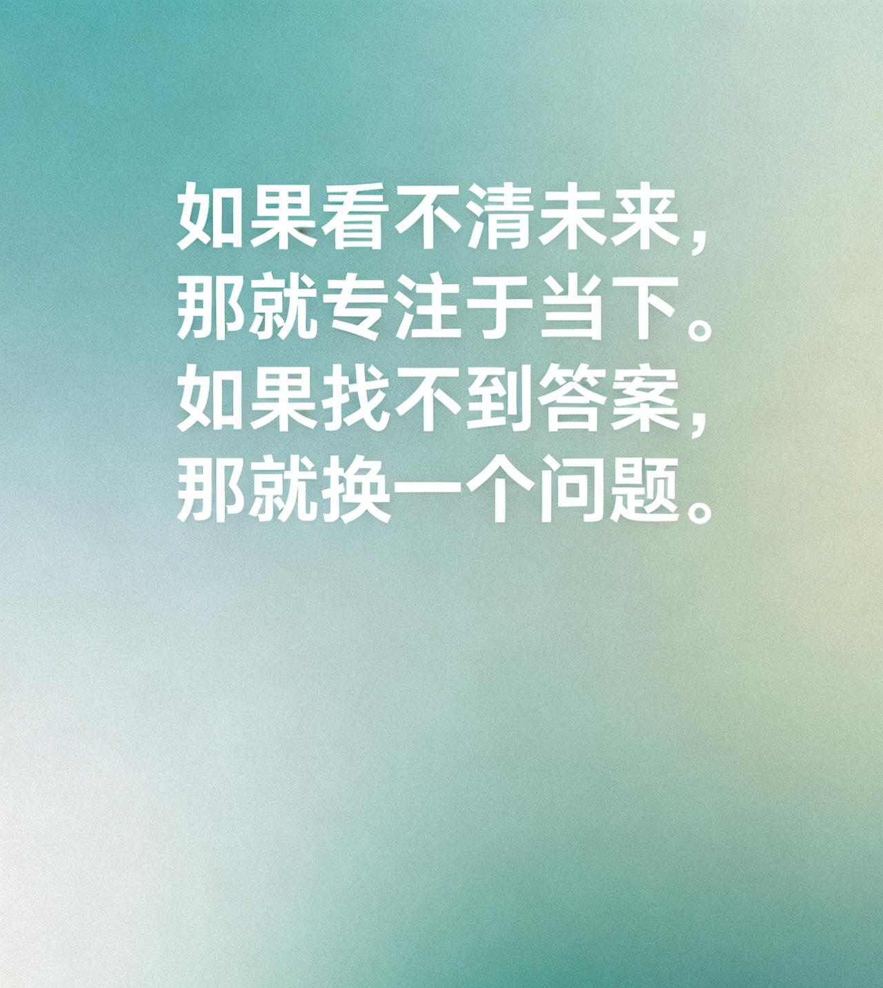 如果看不清未来, 那就专注于当下。 如果找不到答案, 那就换一个问题。 别让