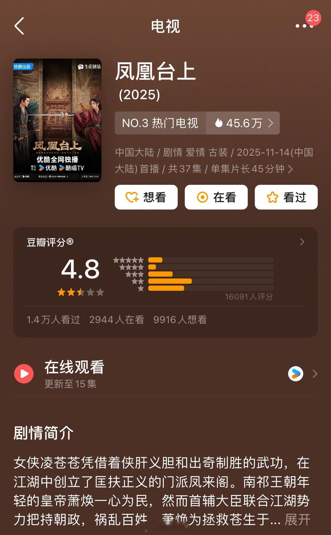 《凤凰台上》豆瓣开分只有4.8分怎么这么低