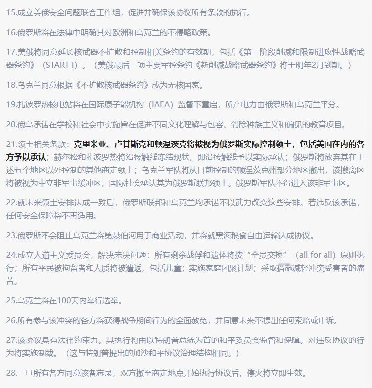 美俄关于俄乌战争的“28点和平计划”曝光,基本满足了俄罗斯方面的一切诉求和战争目标。然而,值得注意的是,计划中涉及组建乌克兰新政府,但没提到泽连斯基本人的未来安排。这等于是直接承认了俄罗斯的全面胜利!
