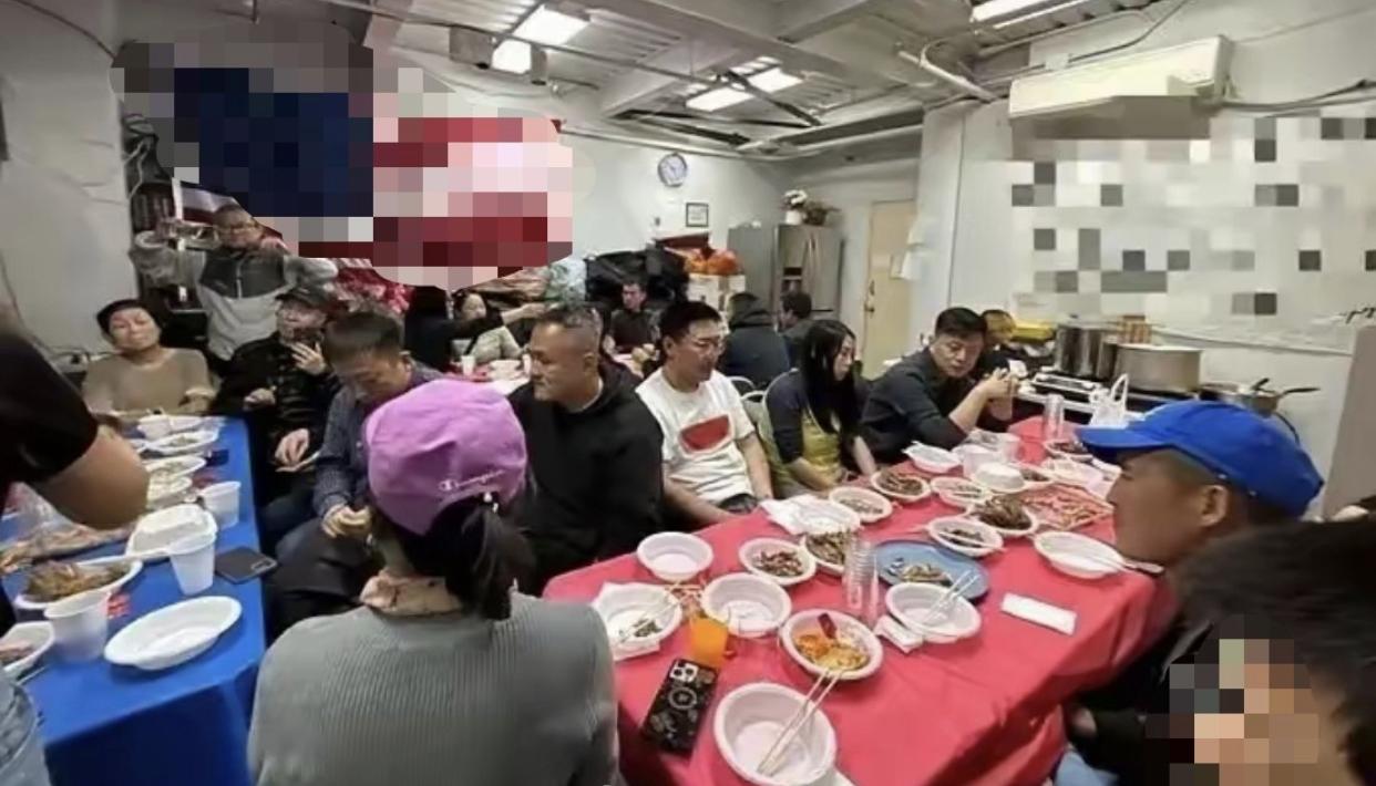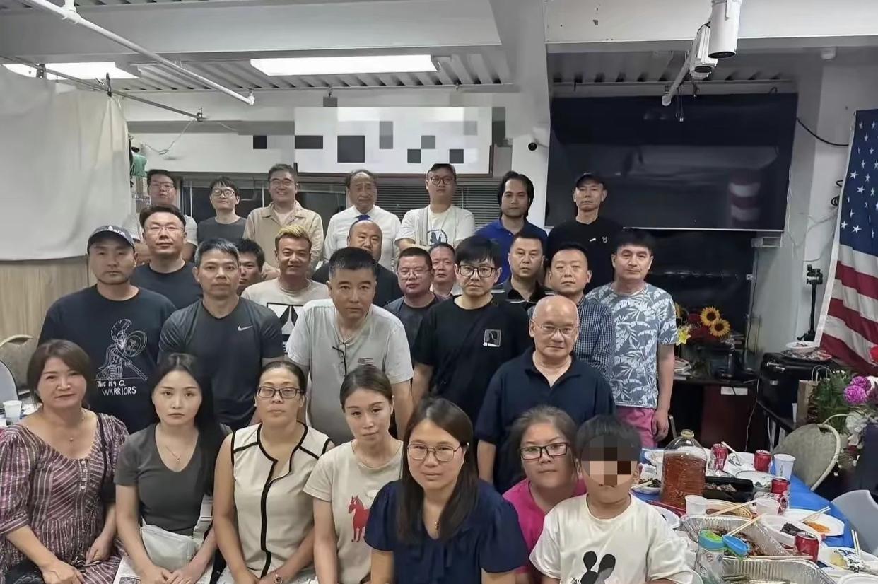 润人们在美国某地下室聚餐交流奋斗心得,并合影留念。 这些人怎么一个个表情都是愁眉苦脸,不太高兴的样子,不应该啊,在美国享受自由民主不是他们所追求的吗?!
