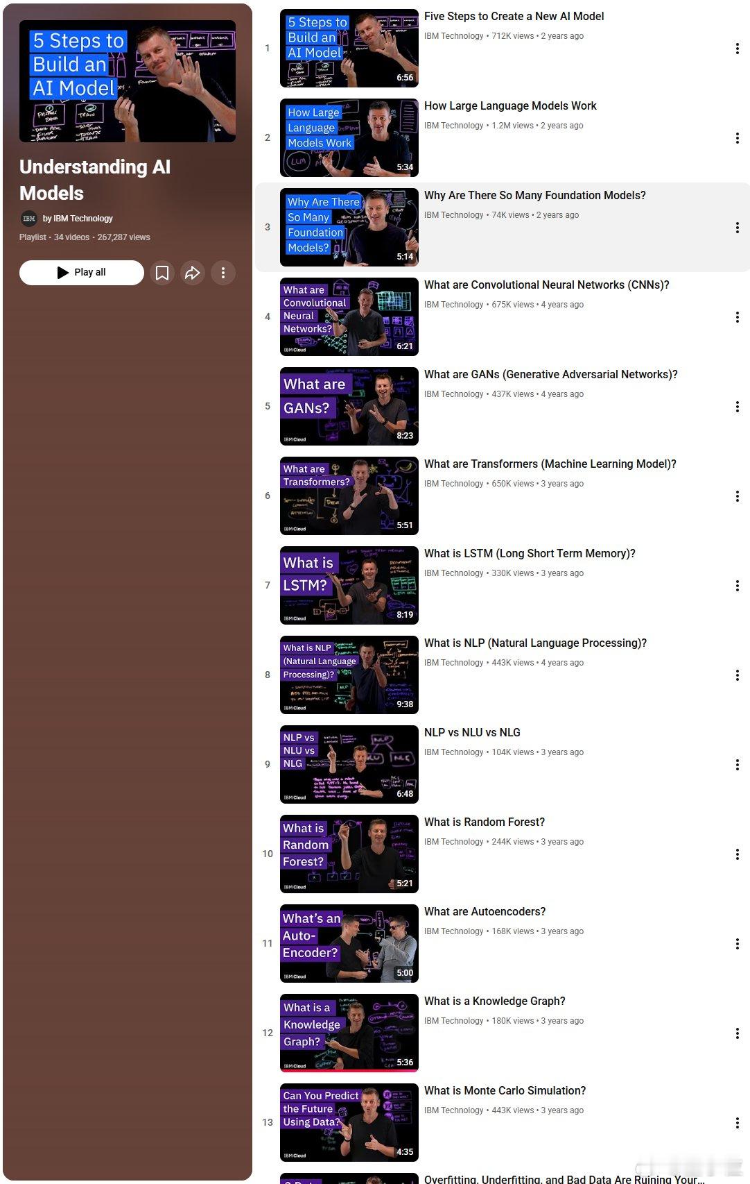 发现一个经典课程,IBM推出的理解AI模型系列视频。现在很多人学AI有个误区,上