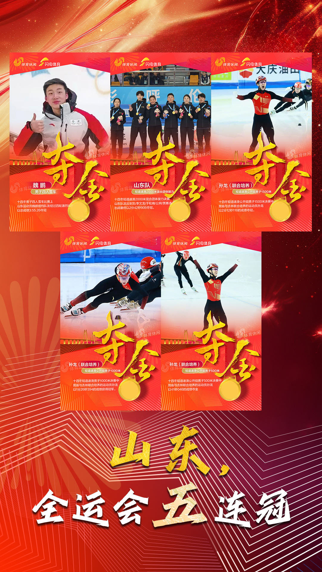 山东代表团以54金的绝对优势实现五连冠,自2009年起持续统治全运会金牌